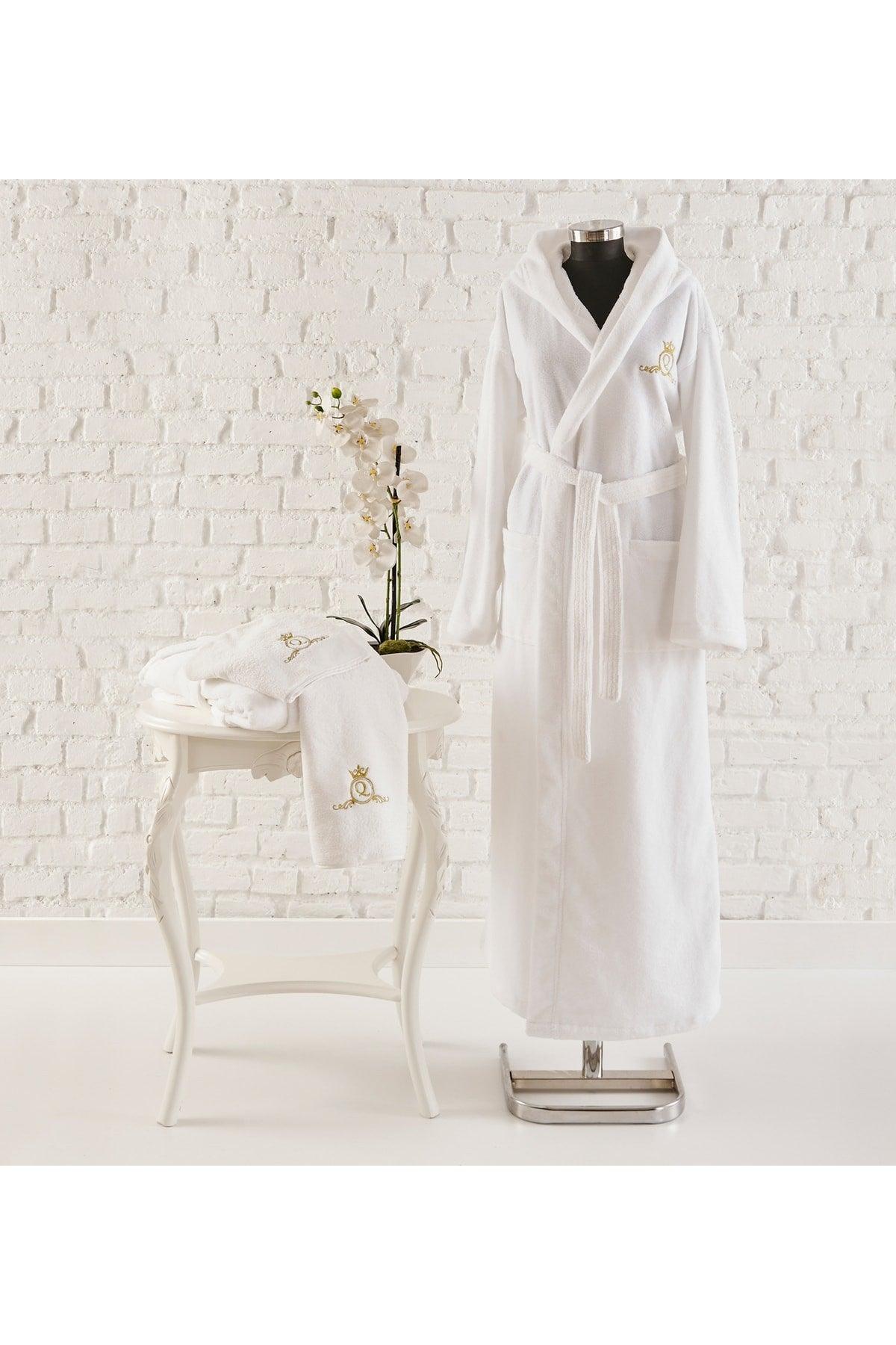 100% כותנה, רכה, טריגה מאייר קטיפה ארוכה וחלוק רחצה לבן עם ברדס מתאים לחיג'אב