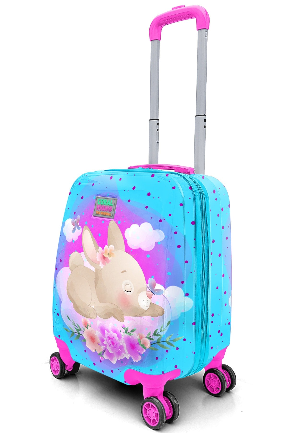 Kids Blue Pink Rabbit Patterned Luggage 16706