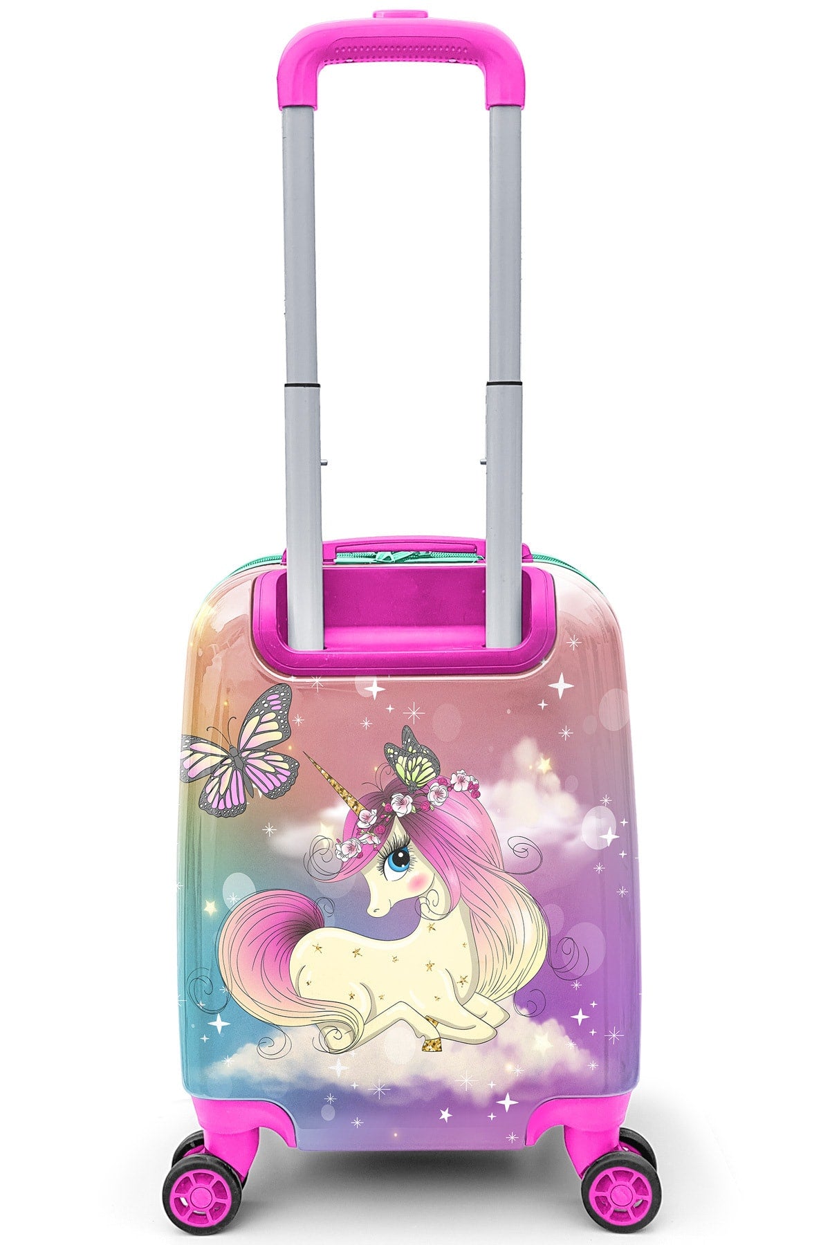 Kids Pink Water Green Unicorn Girl Patterned Suitcase 16704