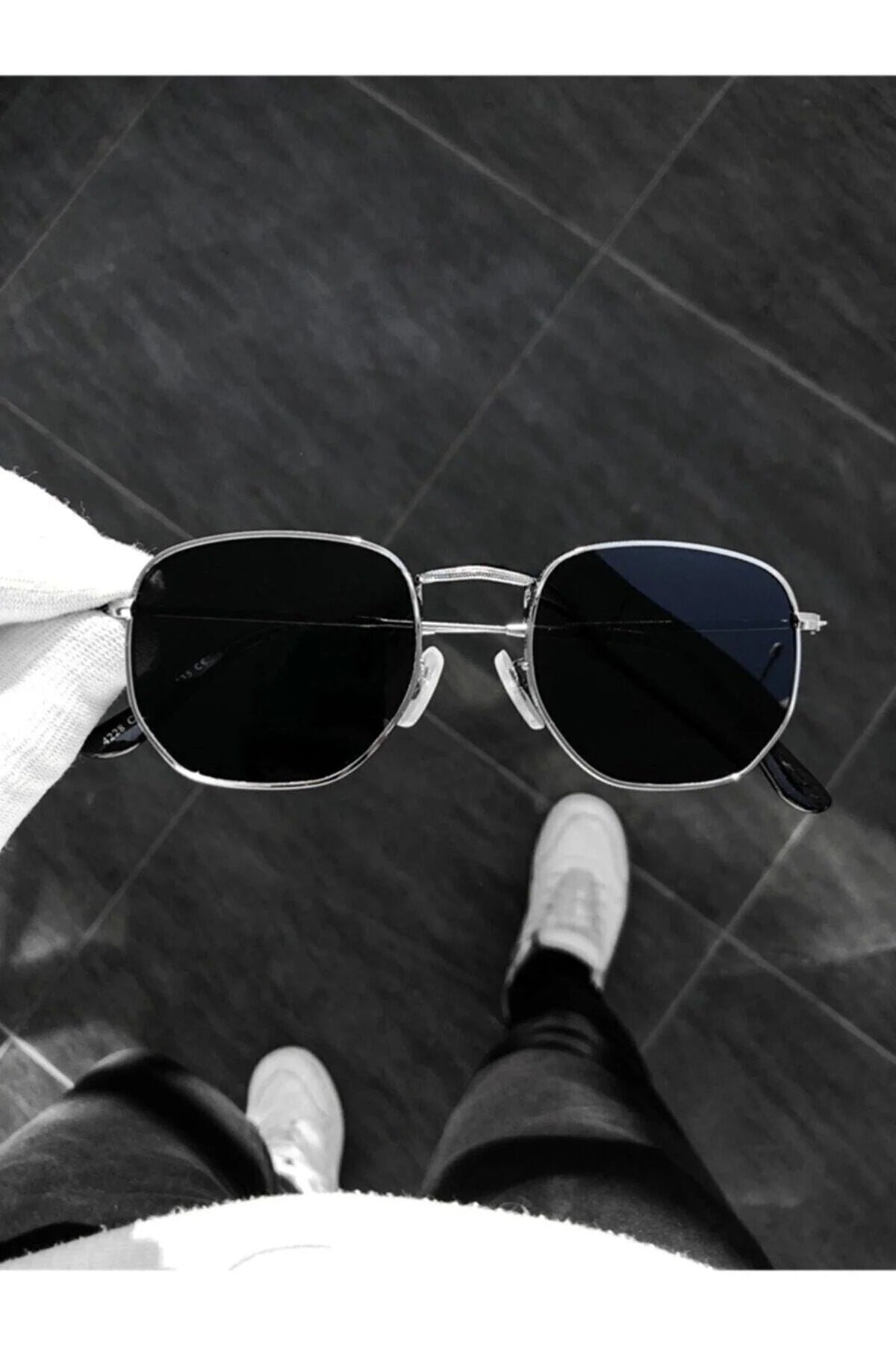 Silver Metal Framed Pentagon Unisex Sunglasses