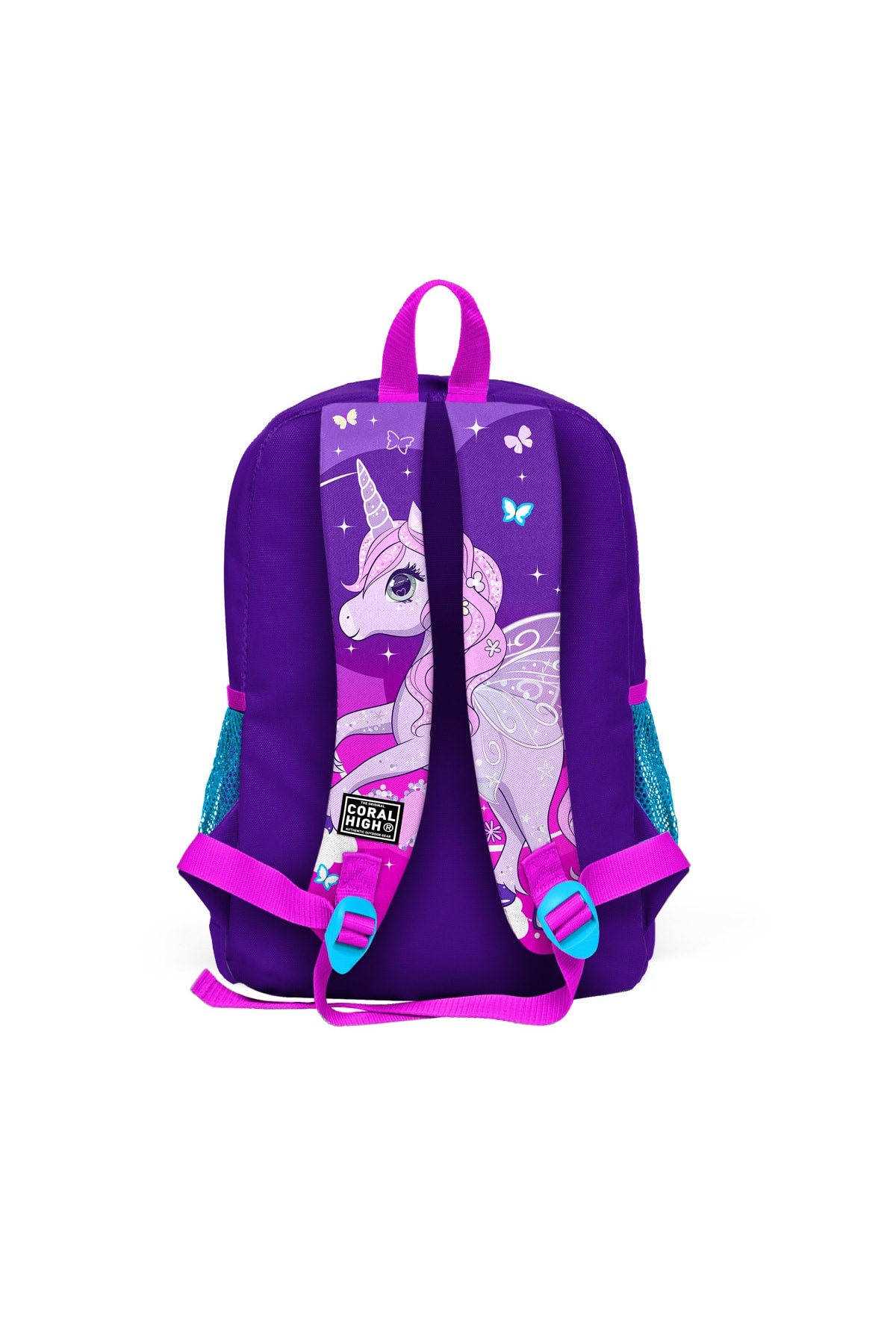 Kids Four Compartment Purple Blue Unicorn 3 Pcs School Bag Set