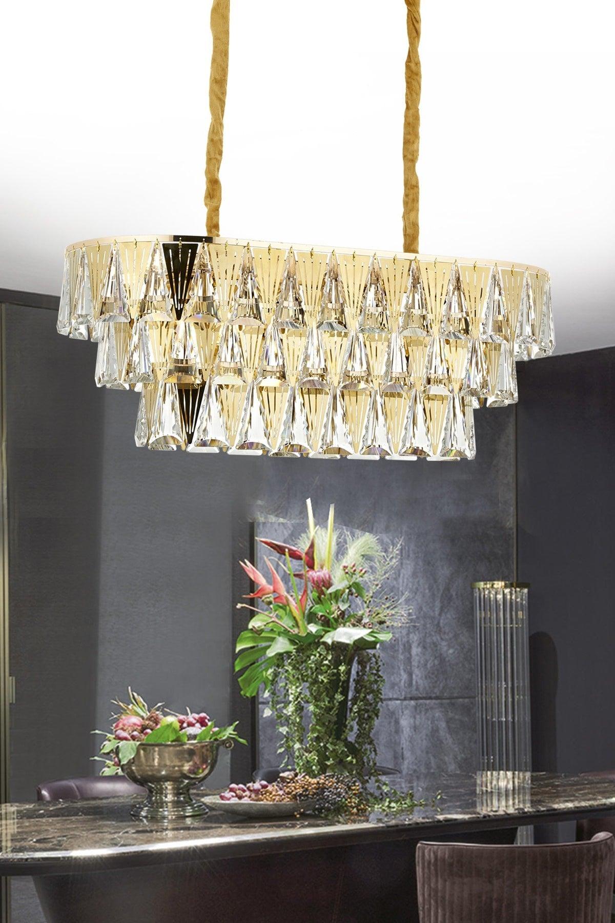 Lampadario di pietra di cristallo giallo di Valeria 80 sul tavolo da pranzo