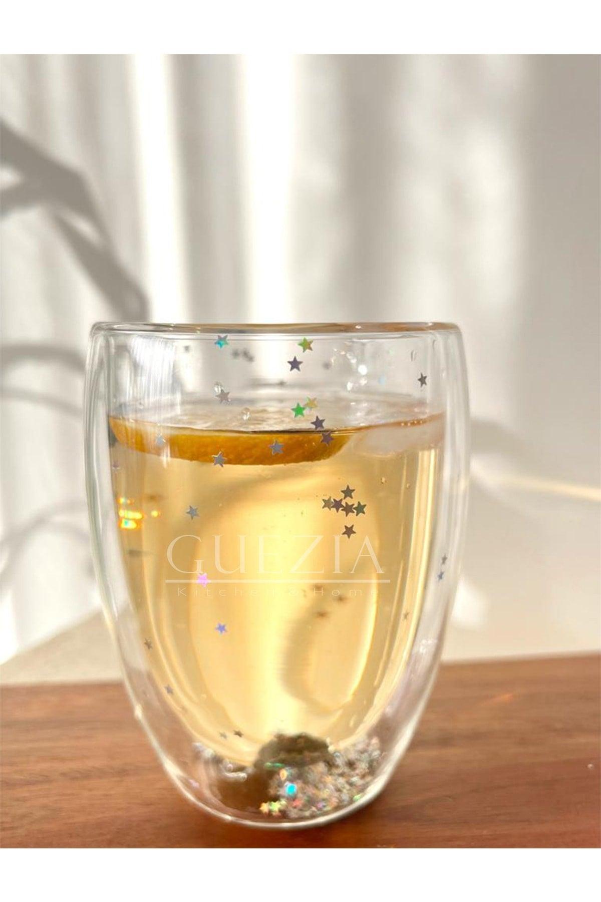 Borosilicato resistente al calore Glitter a doppia tazza di vetro a doppia parete | 1 pezzo | 350 ml
