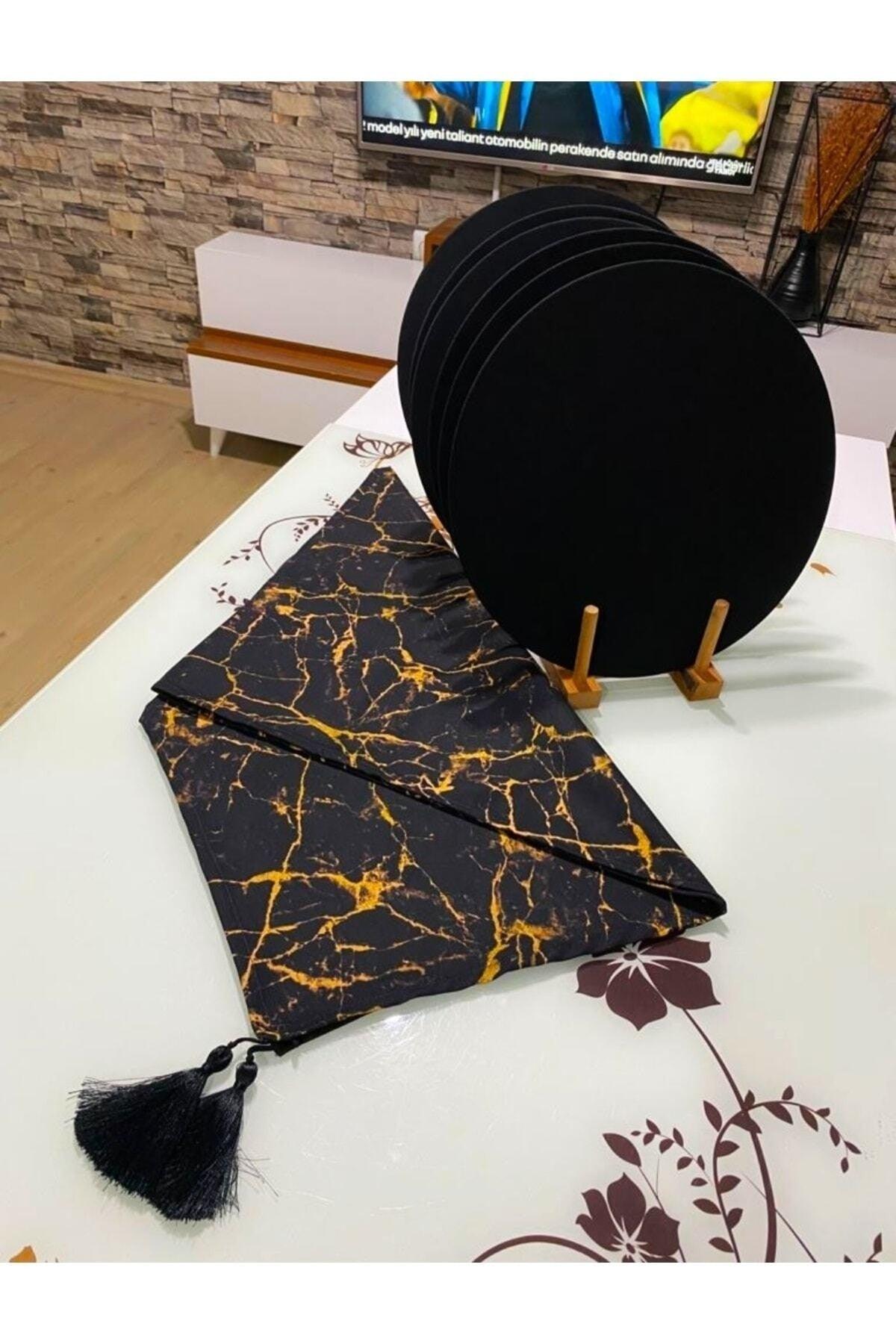 PLAGLEMAT (6 Black Square Bottoms, 1 Runner molizzato da donne etniche)