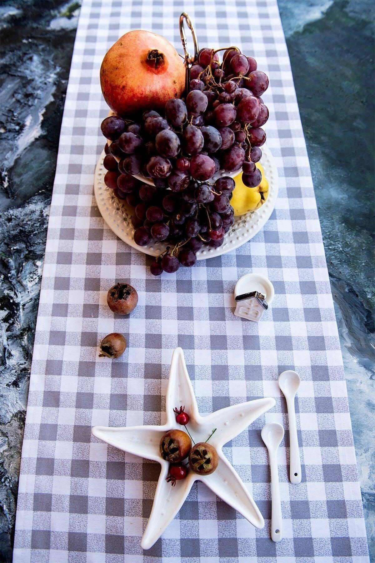 Corridore di tessuto di anatra a scacchi bianchi grigi