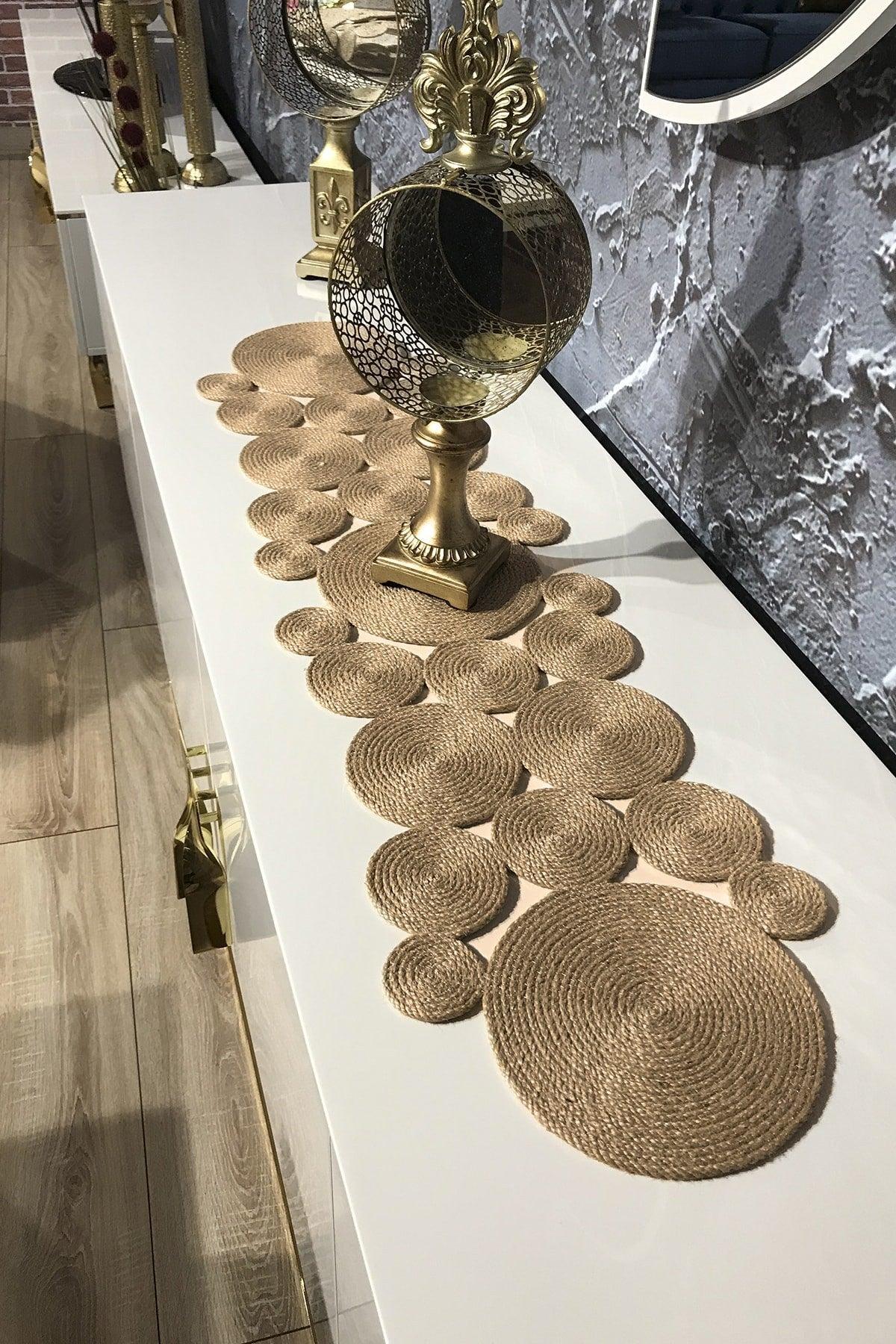 Larghezza del corridore di juta in tessuto di paglia di iuta: 45 cm Lunghezza: 140 cm 4 frangia laterale - corridore sfregiato