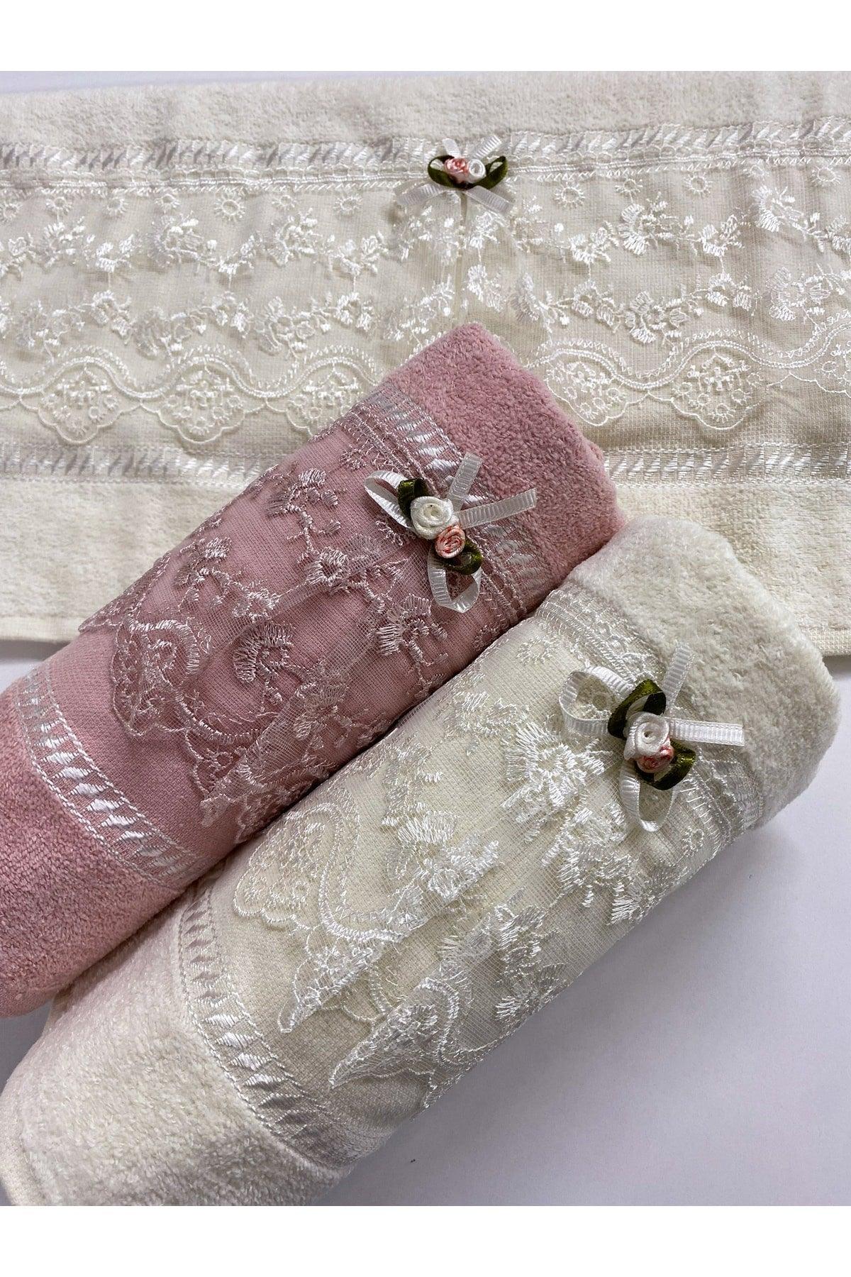 3 pezzi 100% abito dote di cotone con guipure in pizzo a prua 50x90 asciugamano a mano e faccia
