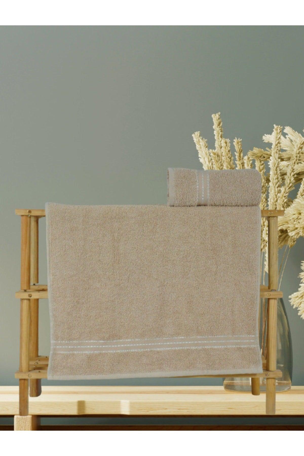 Set di cotone 100% di 2 bagni da bagno 70x140 cm (beige-grigio)