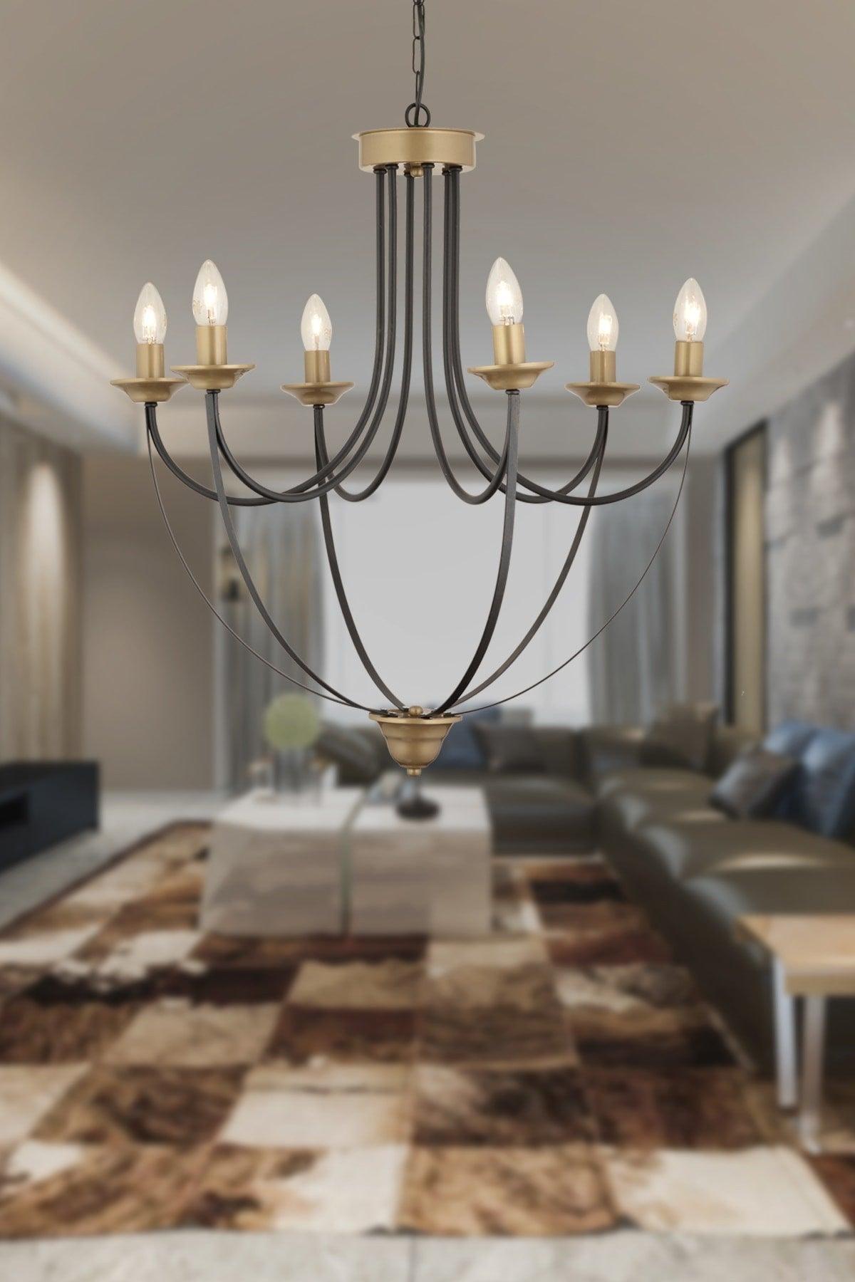 Lorento 8li Round Black Gold Modern Cafe per il ristorante Uygun Retro Hall Chandeler