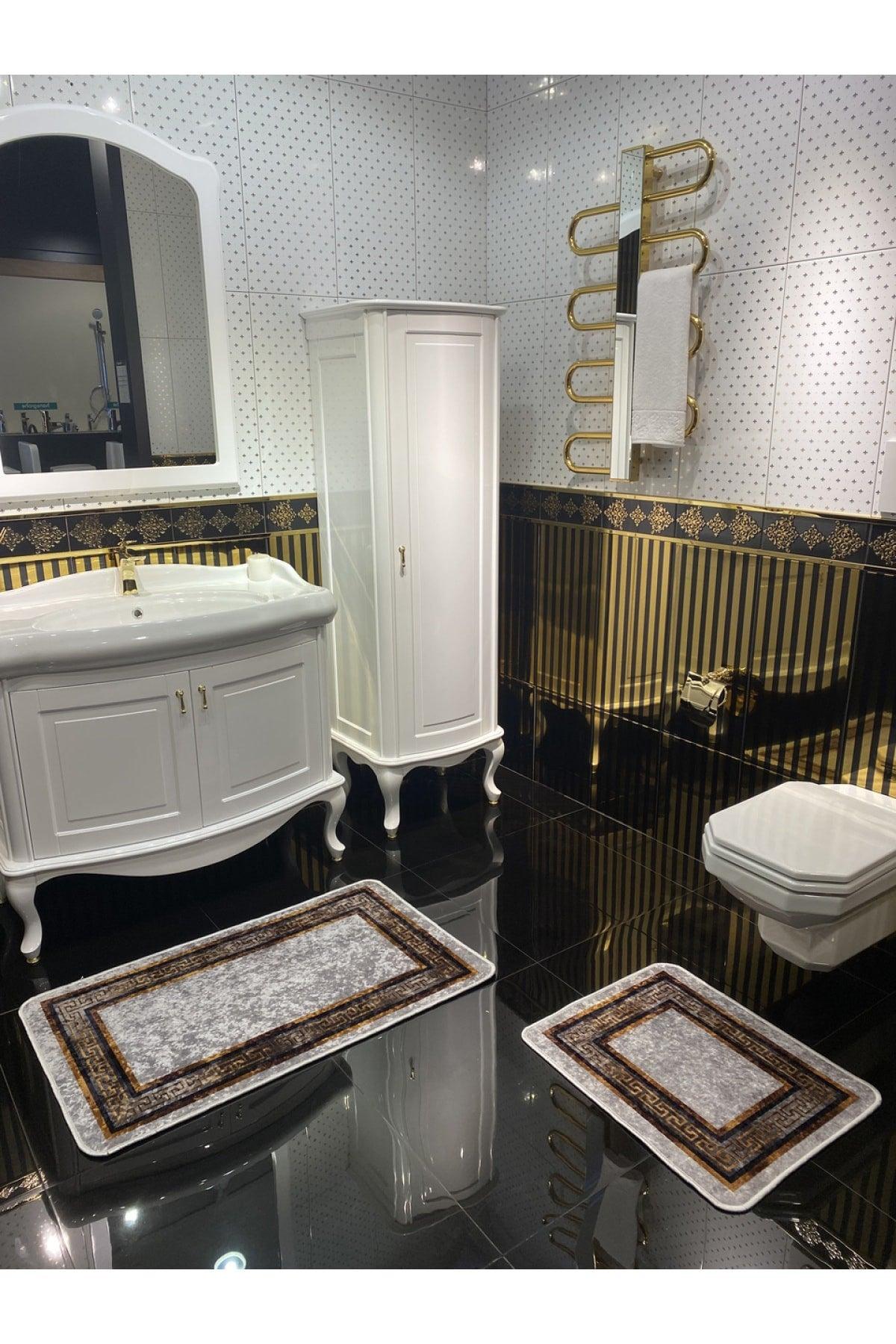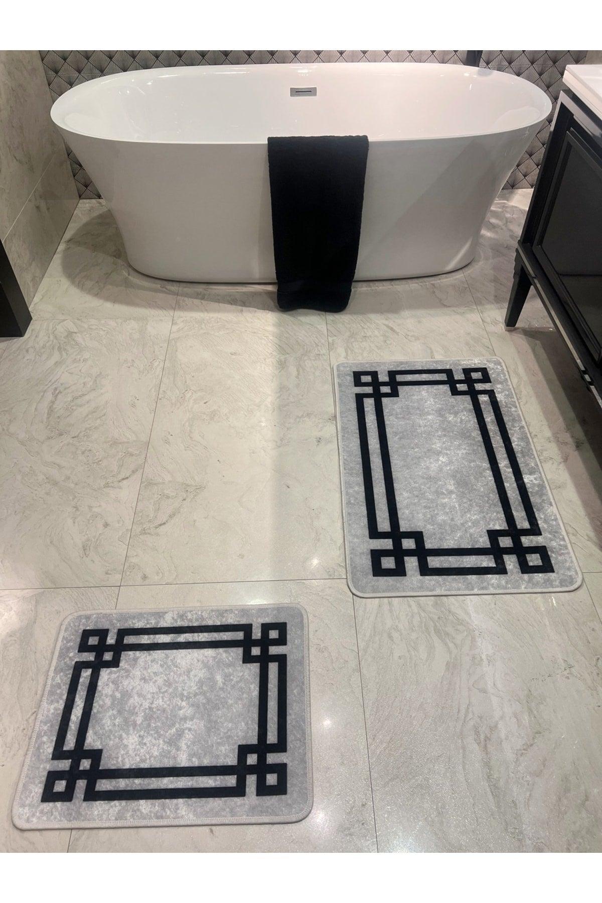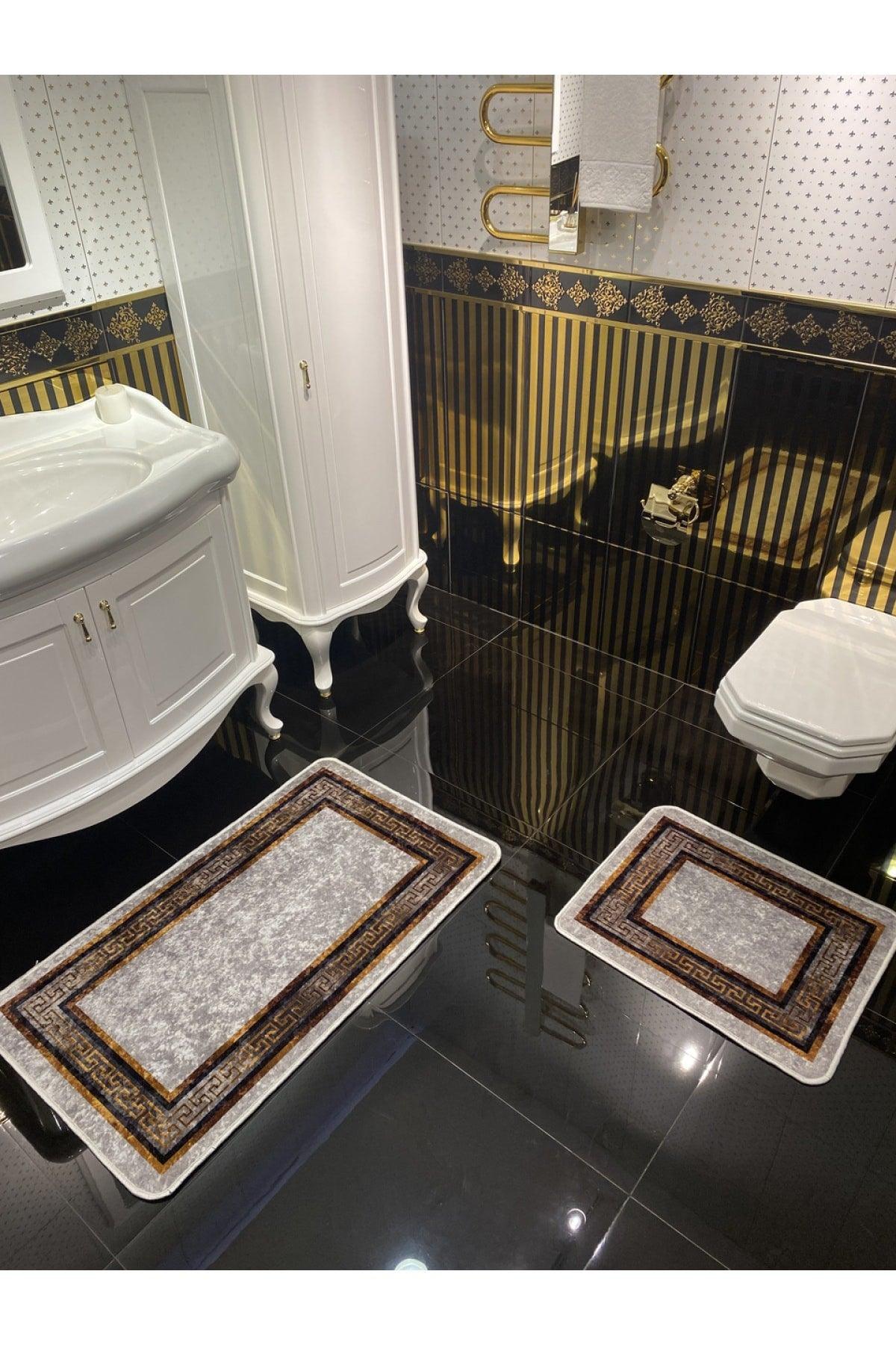 Set di tappeti da bagno anti-slip a 2 pezzi Versace (60x100-60x50) grigio