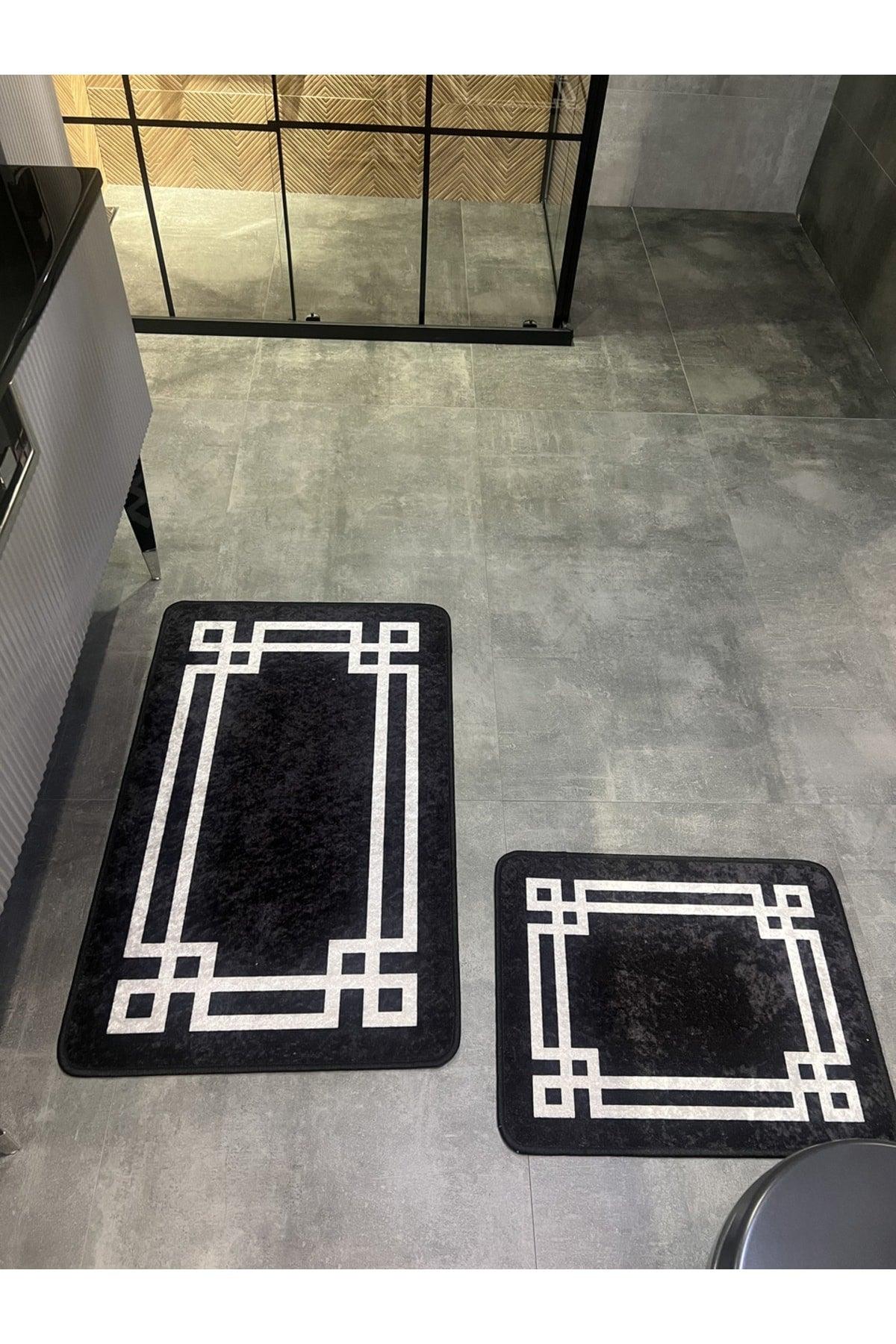 Base in lattice impermeabile senza frange (60x100 - 60x50) Set di tappeti da bagno a doppio bagno -black