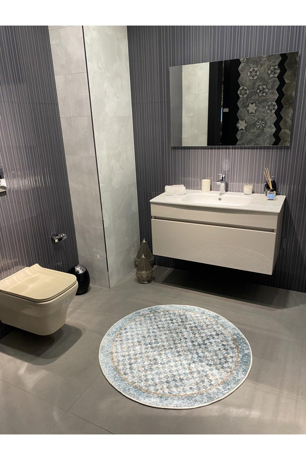 Robert Blue Checkboard Pattern Round Bath Mat non fringate - dimensione blu 100x100