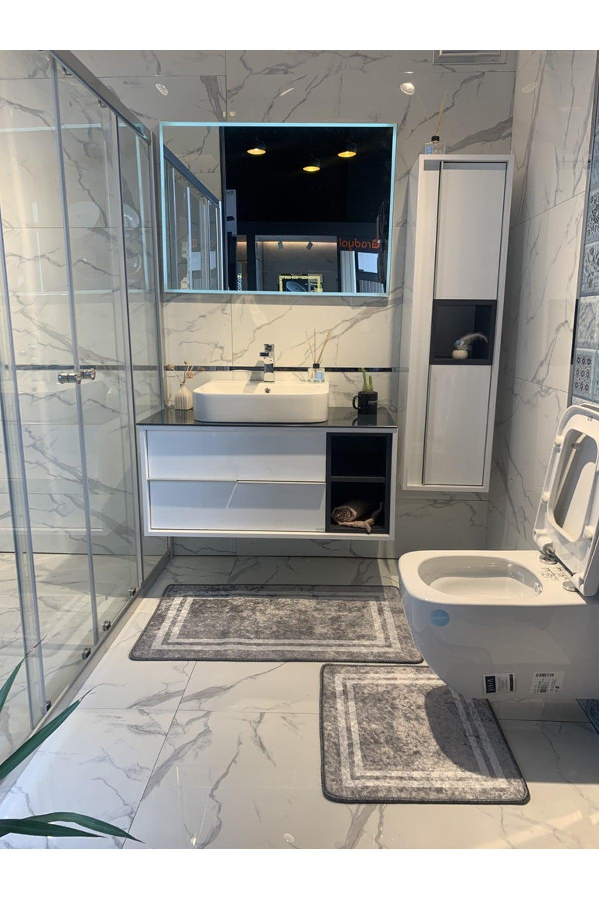 Base in lattice impermeabile senza frange (60x100 - 60x50) set di tappeti da bagno a doppio bagno -gray