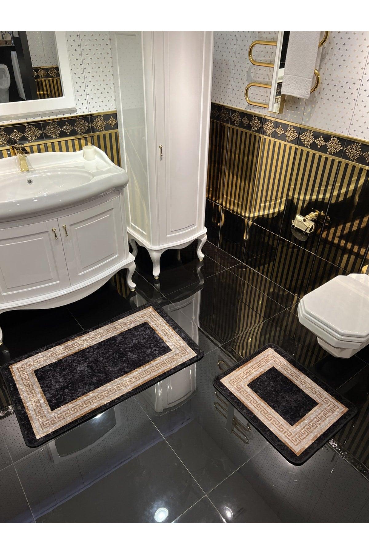 Set di tappeti da bagno anti-slip a 2 pezzi Versace (60x100-60x50) oro nero