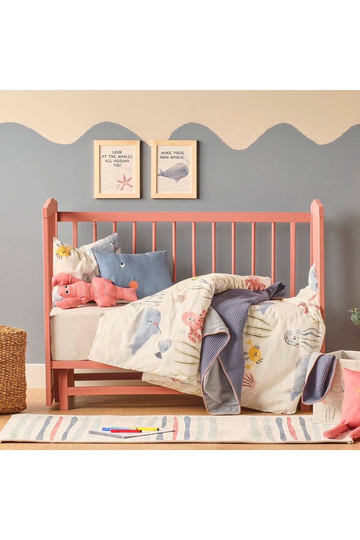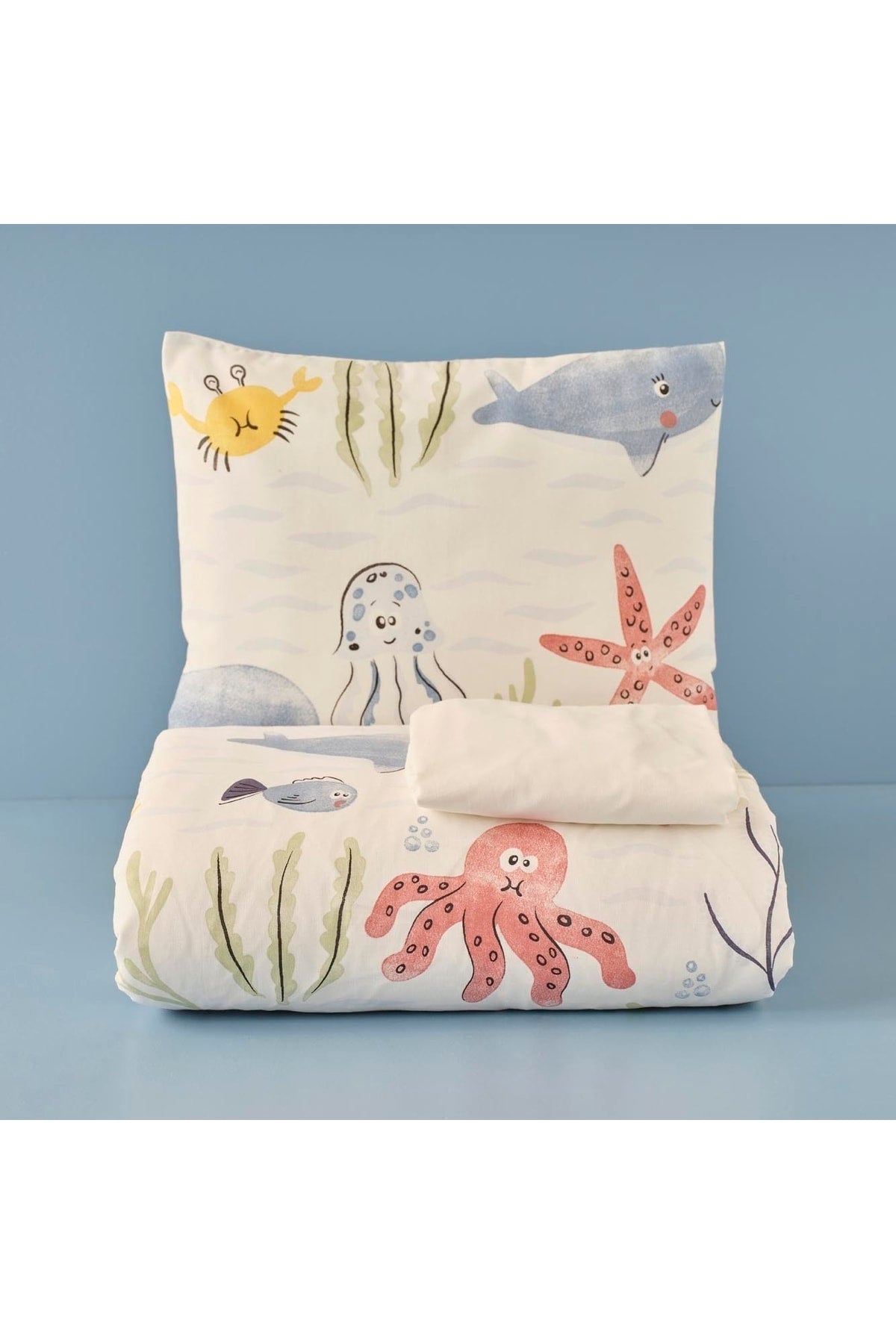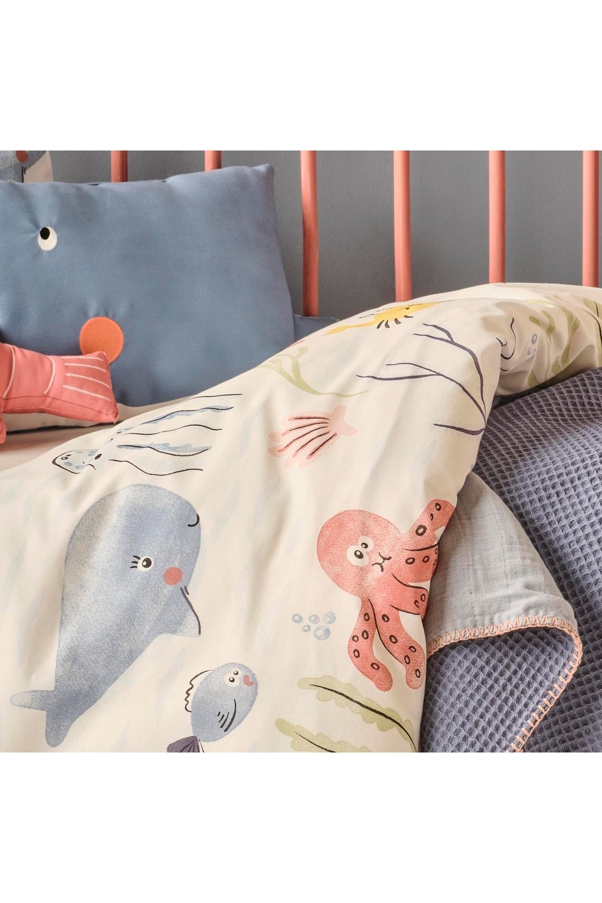 100% Cotton Ranforce Marin Whale Baby Duvet Cover Set Blue (100X150 Cm)