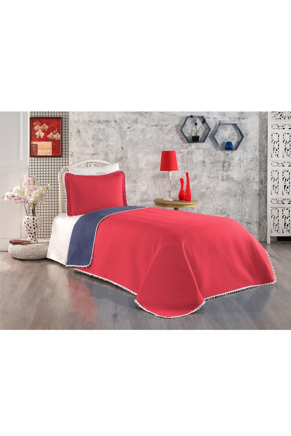 100% di cotone a letto singolo (pique) set con pompom rosso/blu navy