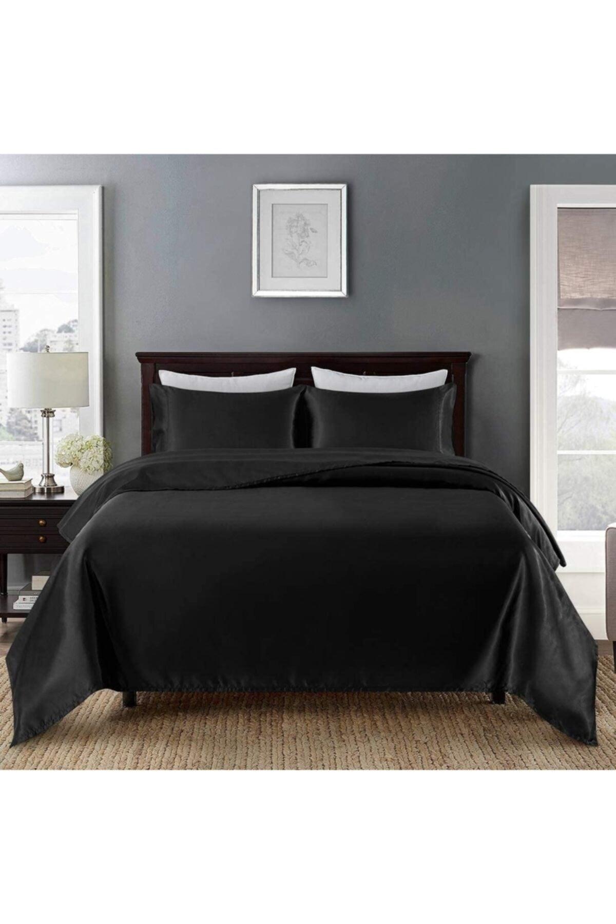 Set di coperture per piumini a doppio set di coperture in raso da 4 pezzi al 100% set di coperture per due pezzi 200x220 cm foglio nero di colore nero