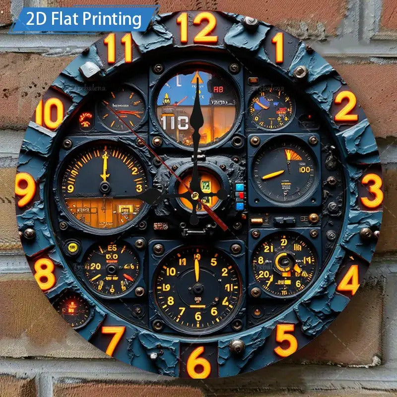 10x10 Inch Aviation Pilot Dashboard Wall Clock - Silent Non-Ticking Mechanism, Retro Aircraft Cockpit Design with Black/Golden/Grey, Artificial Wood Frame & Realistic Flight Instrument Panel for Home, Office, for Man Cave, Pilot