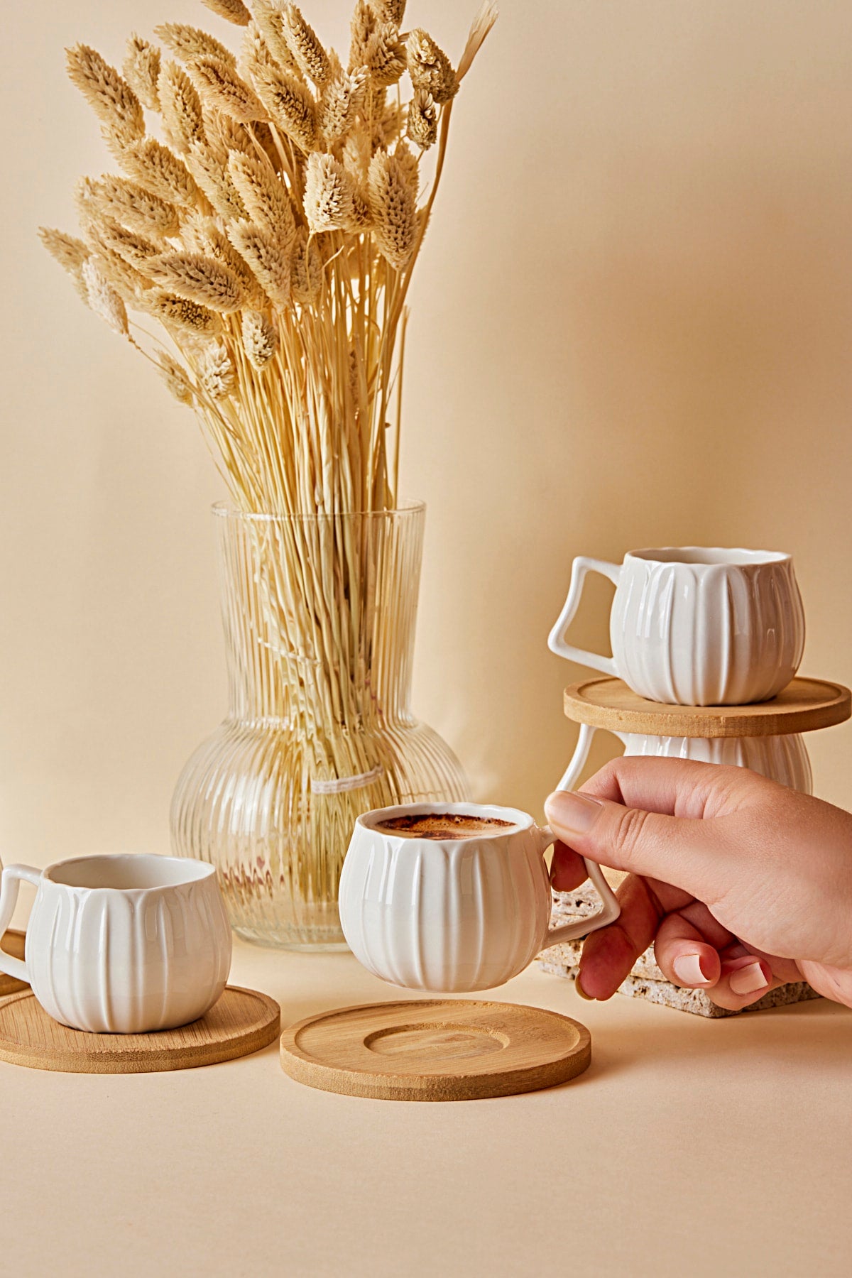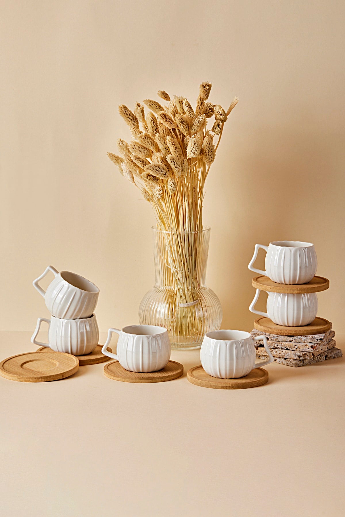 12648 Marghe 12 Piece Turkish Coffee Cup Set With Bamboo Saucer