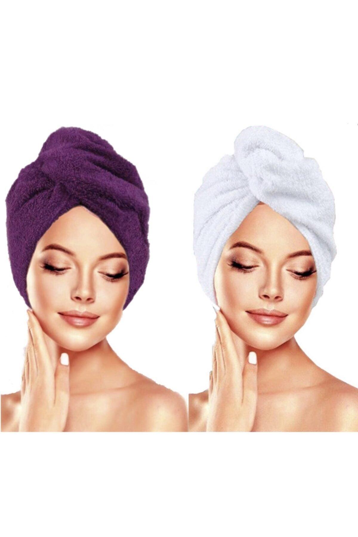 2 bottoni al 100% di peli di cotone tappo per capelli viola e bianco