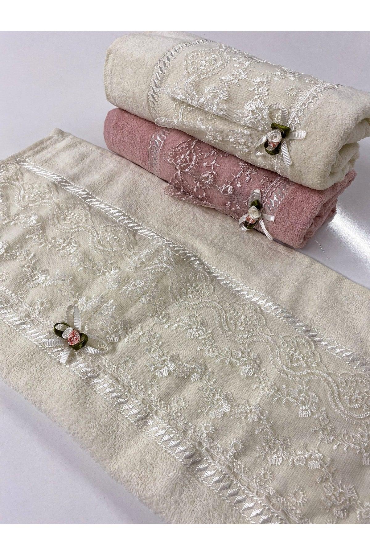 3 pezzi 100% abito dote di cotone con guipure in pizzo a prua 50x90 asciugamano a mano e faccia