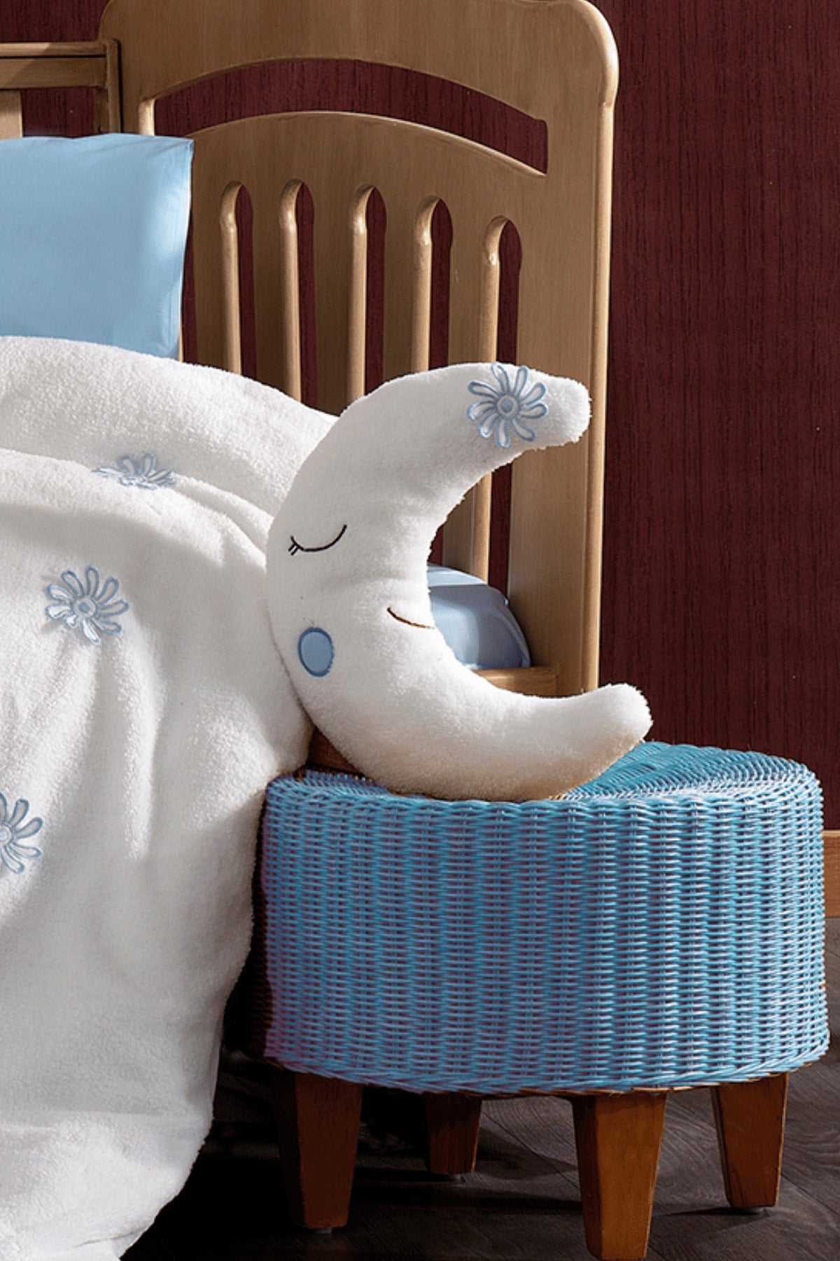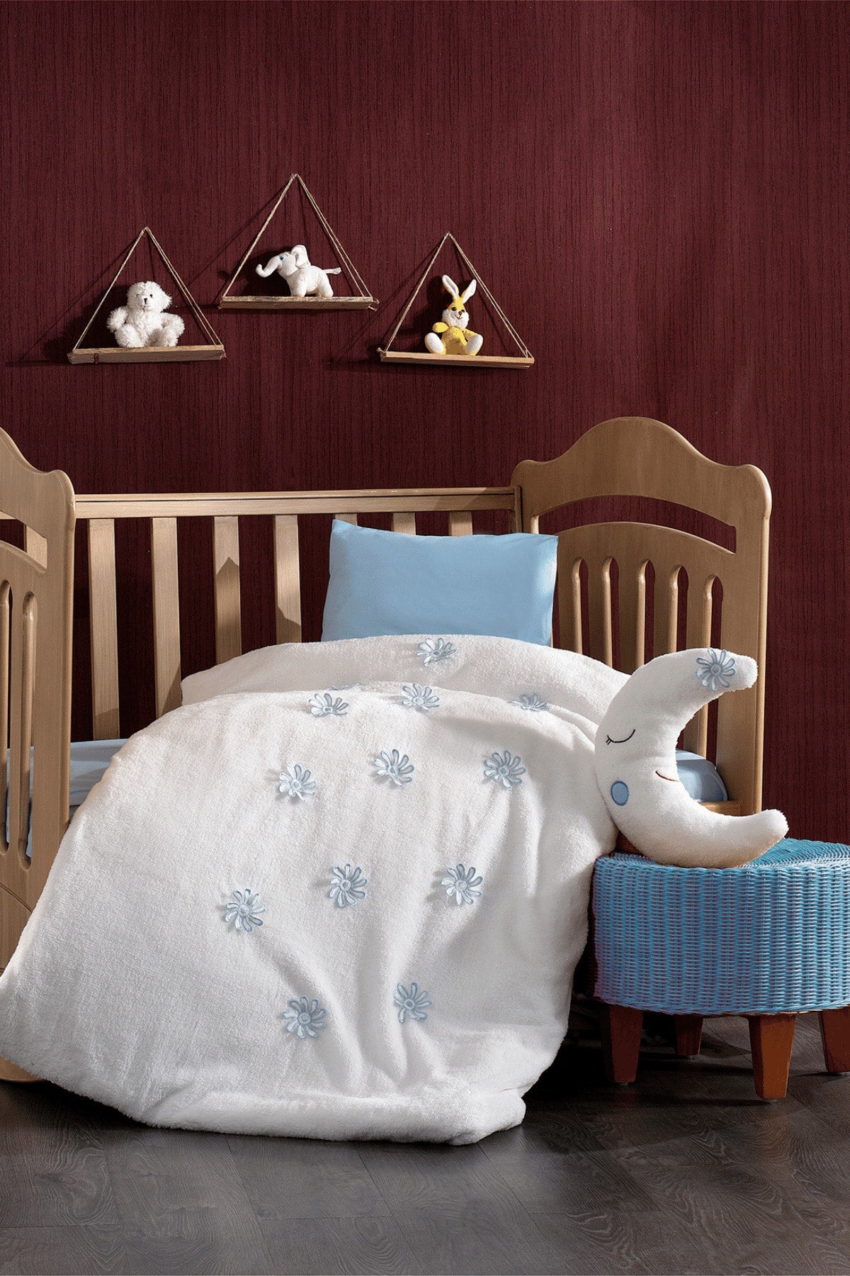 4 Pieces 100% Cotton 3D Floral Pattern And Moon Pillow Blue Baby Duvet Cover Set