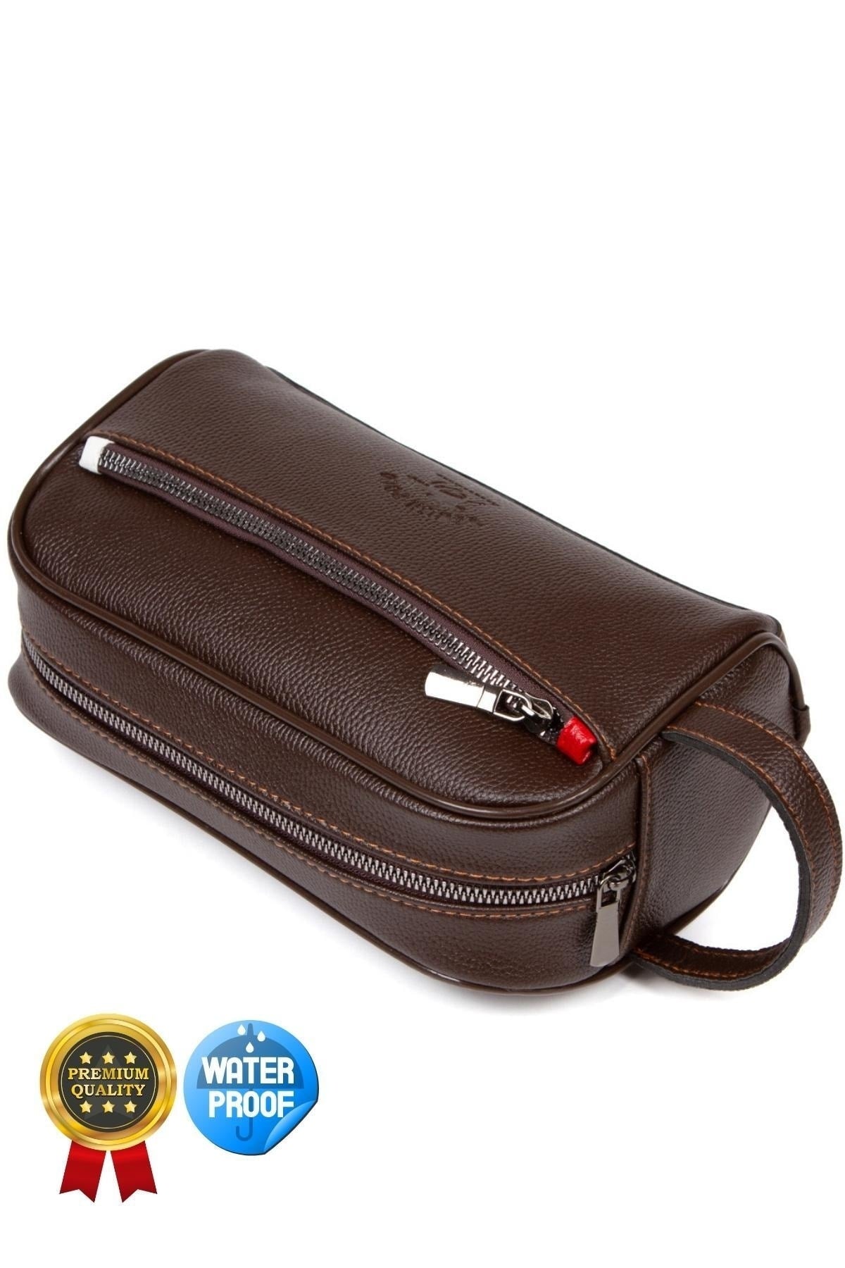 Adelina Men'S Leather Portfolio Clutch Bag Travel Shaving Cosmetic Clutch Bag Dark Brown