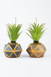 Set succulento artificiale con vaso di cemento geometrico