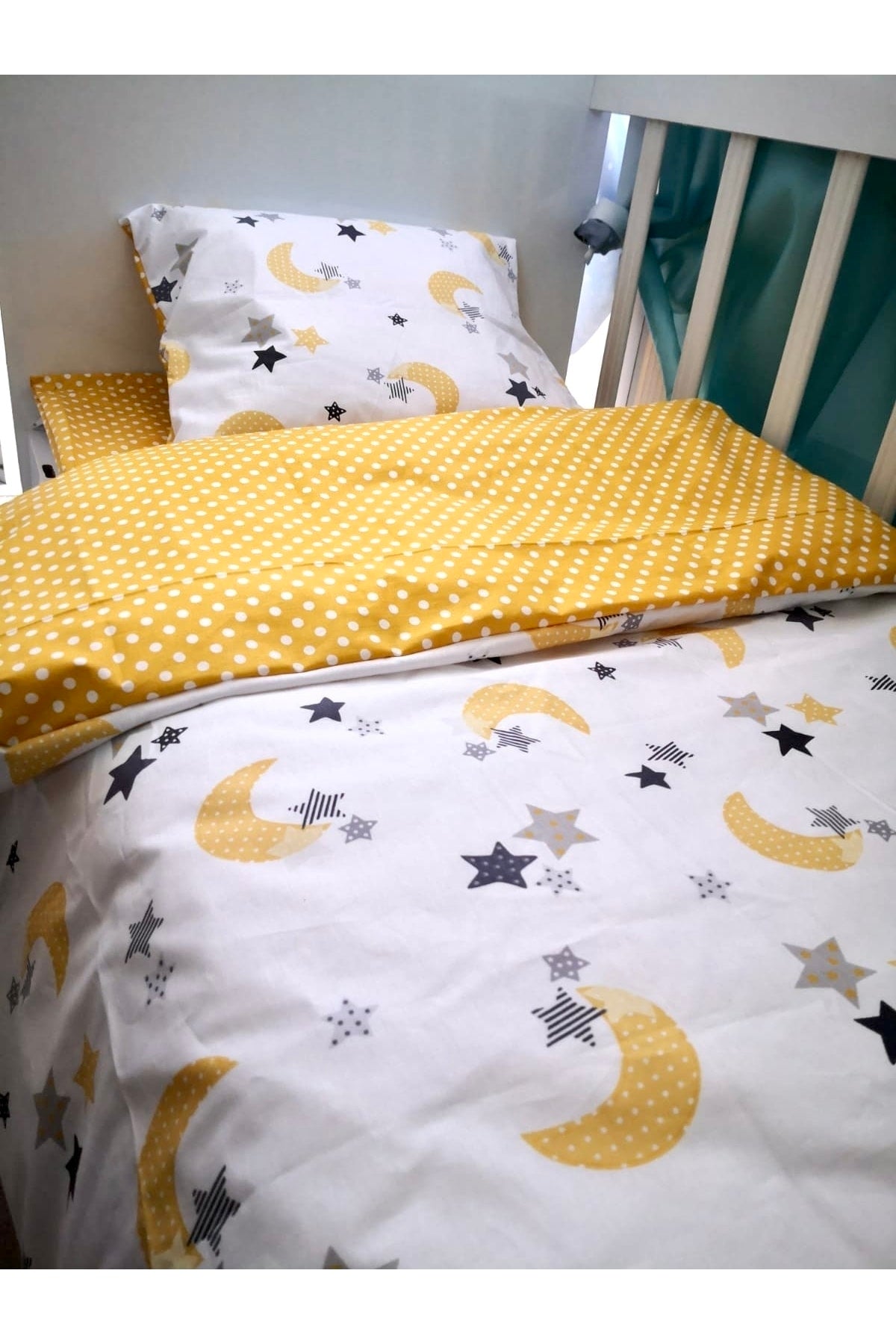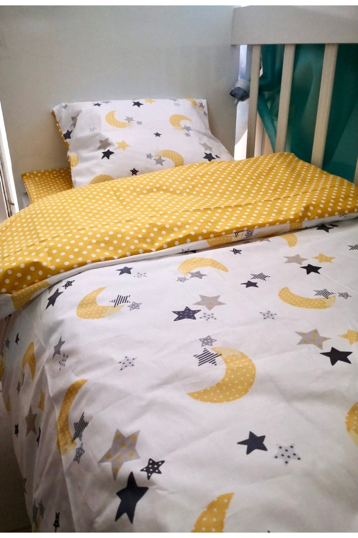 Baby Kids Duvet Cover Set 70X110 For Park Crib Yellow Moon Star Yellow Polka Dot