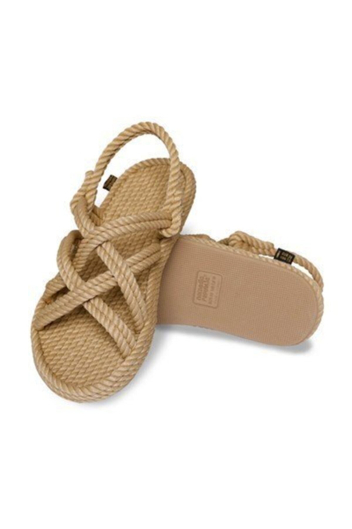Bodrum Rubber Sole Women'S Rope & Rope Sandals - Beige
