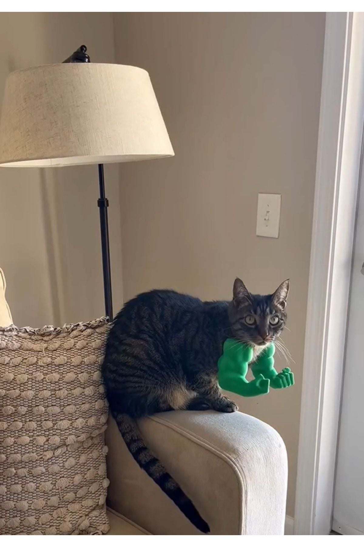 “My cat went nuts when he saw this Hulk arm! 😹 It’s now his favorite toy ever.”