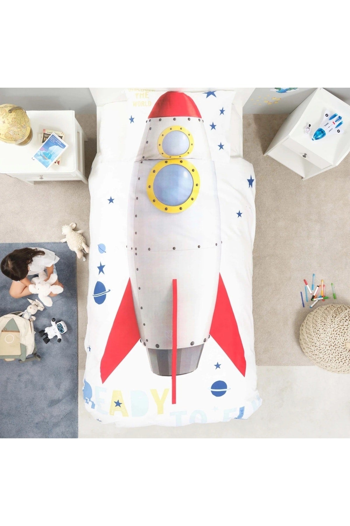 Cotton Space Rocket Patterned Children'S Room Boys' Duvet Cover Set