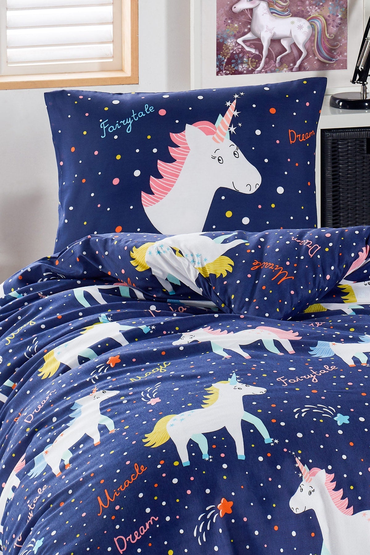 Junior Duvet Cover Set Single Magicunicorn Navy