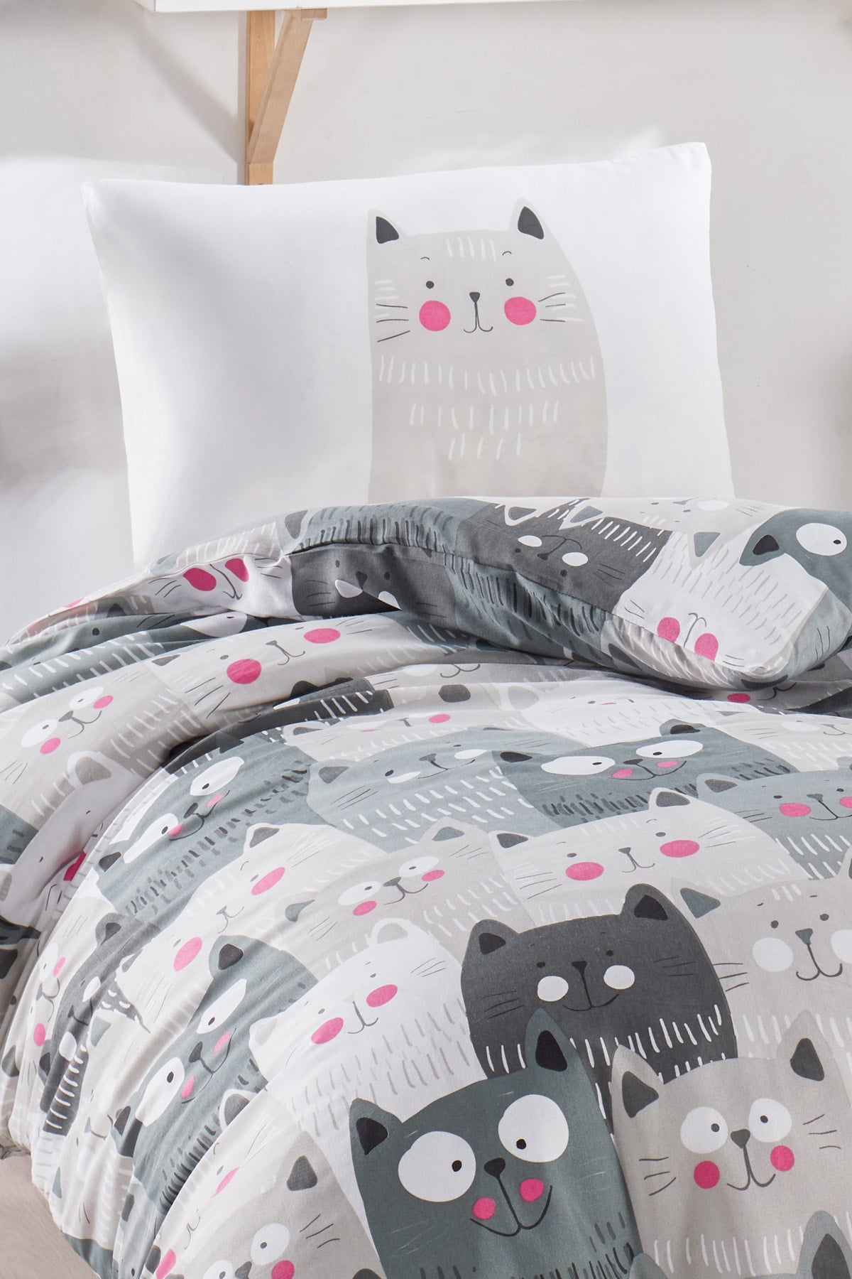Junior Duvet Cover Set Single On The Wallcats Gray