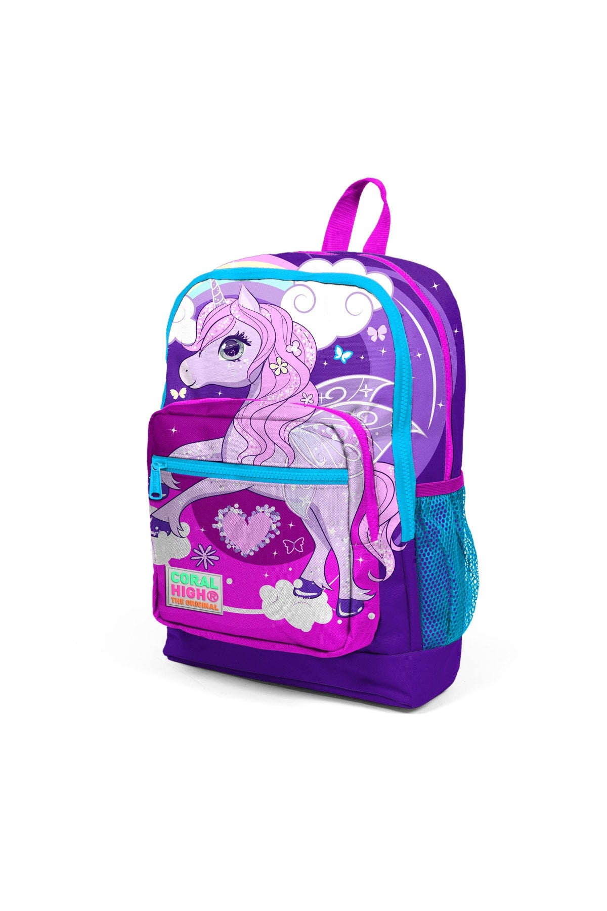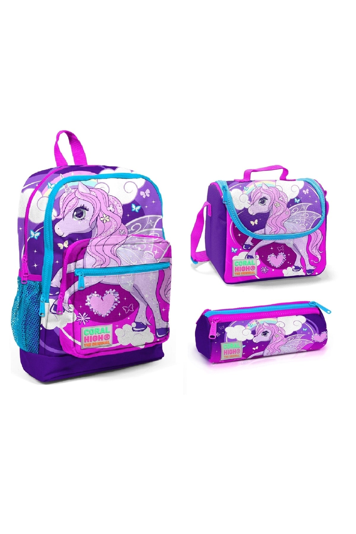Kids Four Compartment Purple Blue Unicorn 3 Pcs School Bag Set