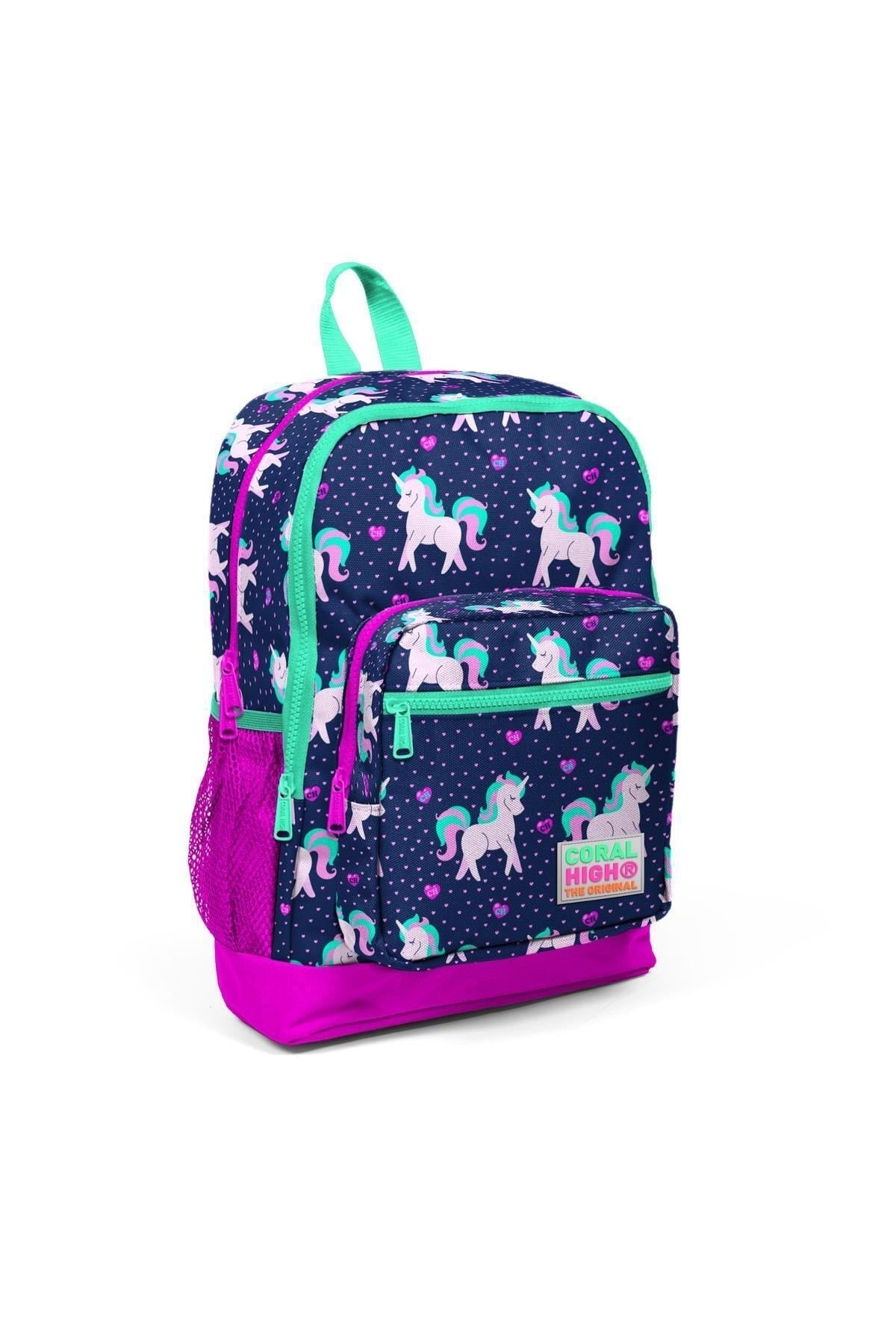 Kids Navy Blue Pink Unicorn Patterned Usb 3 Pcs School Bag Set Set0123270