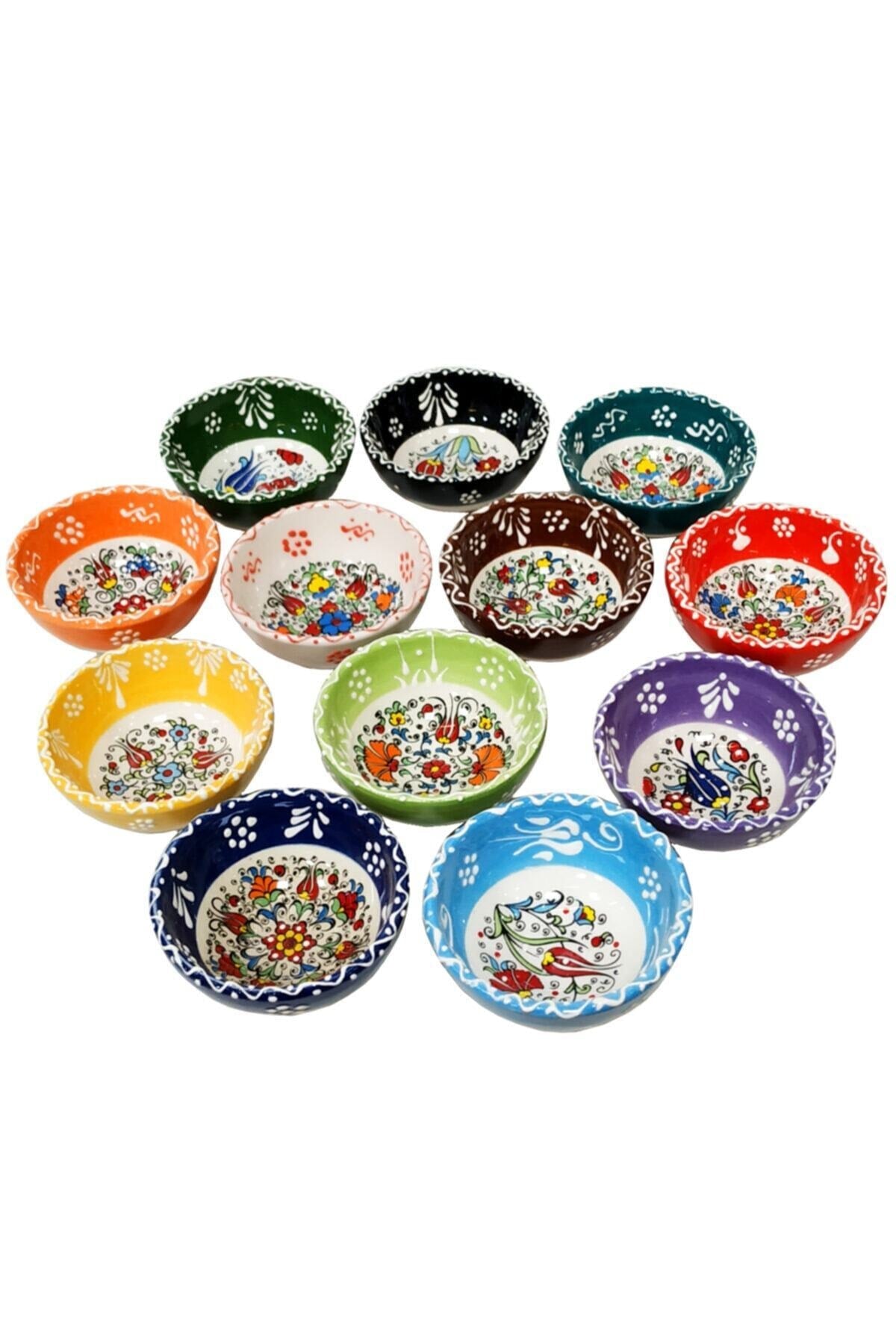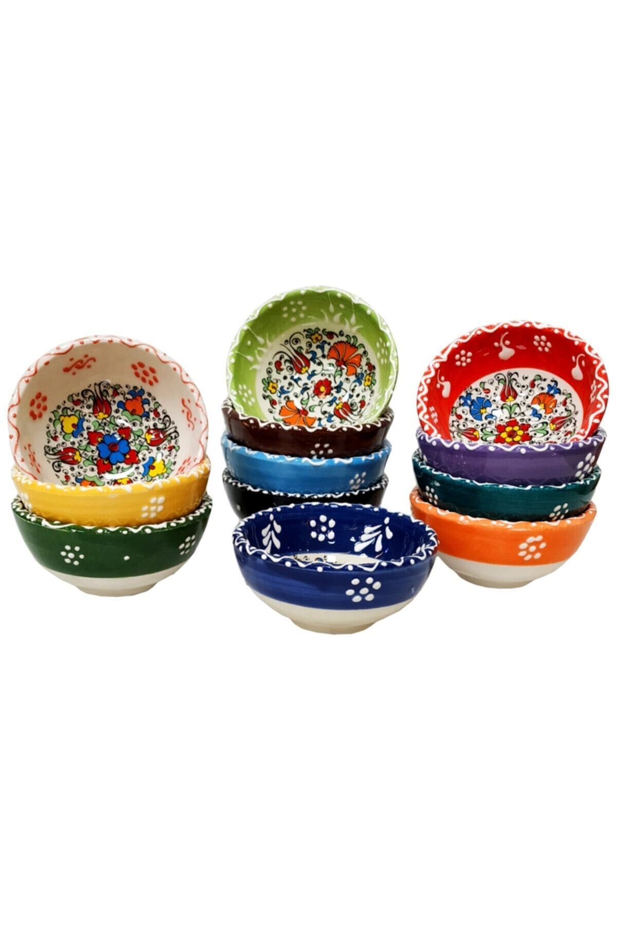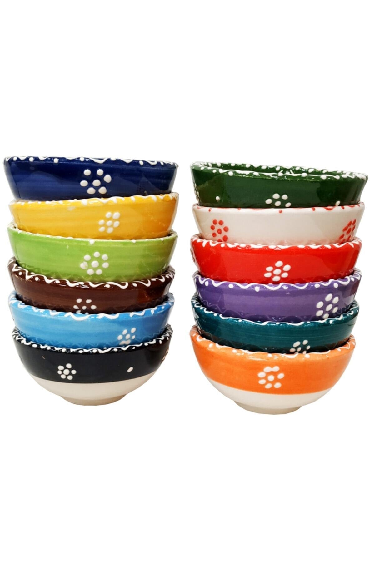 swordslife Series 12 Pieces Ceramic Snack Sauce Bowl Breakfast Presentation Bowl - 8 Cm Diameter With Tile Motif