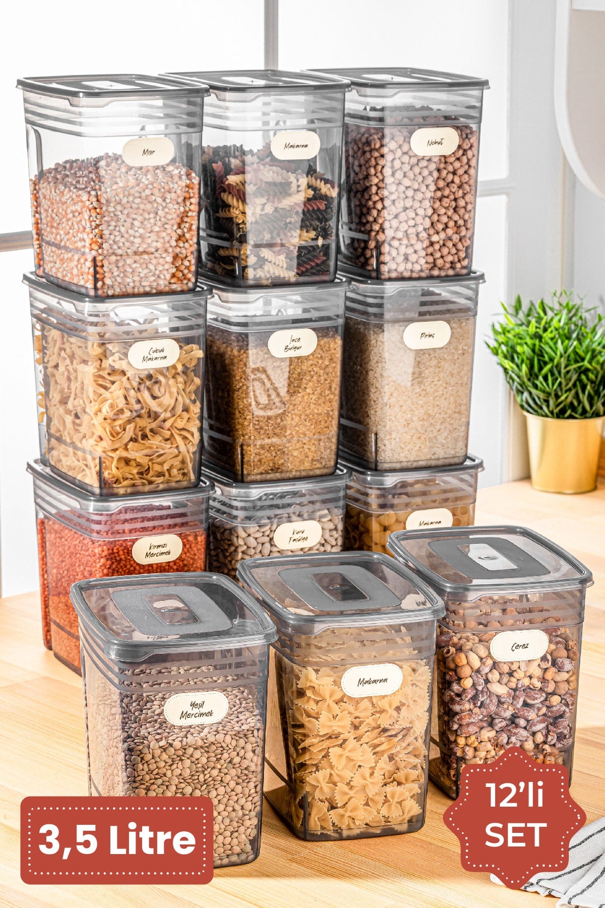 Labeled Set Of 12 Strip Mega Size Food Storage Container 3.5 Liter Anthracite