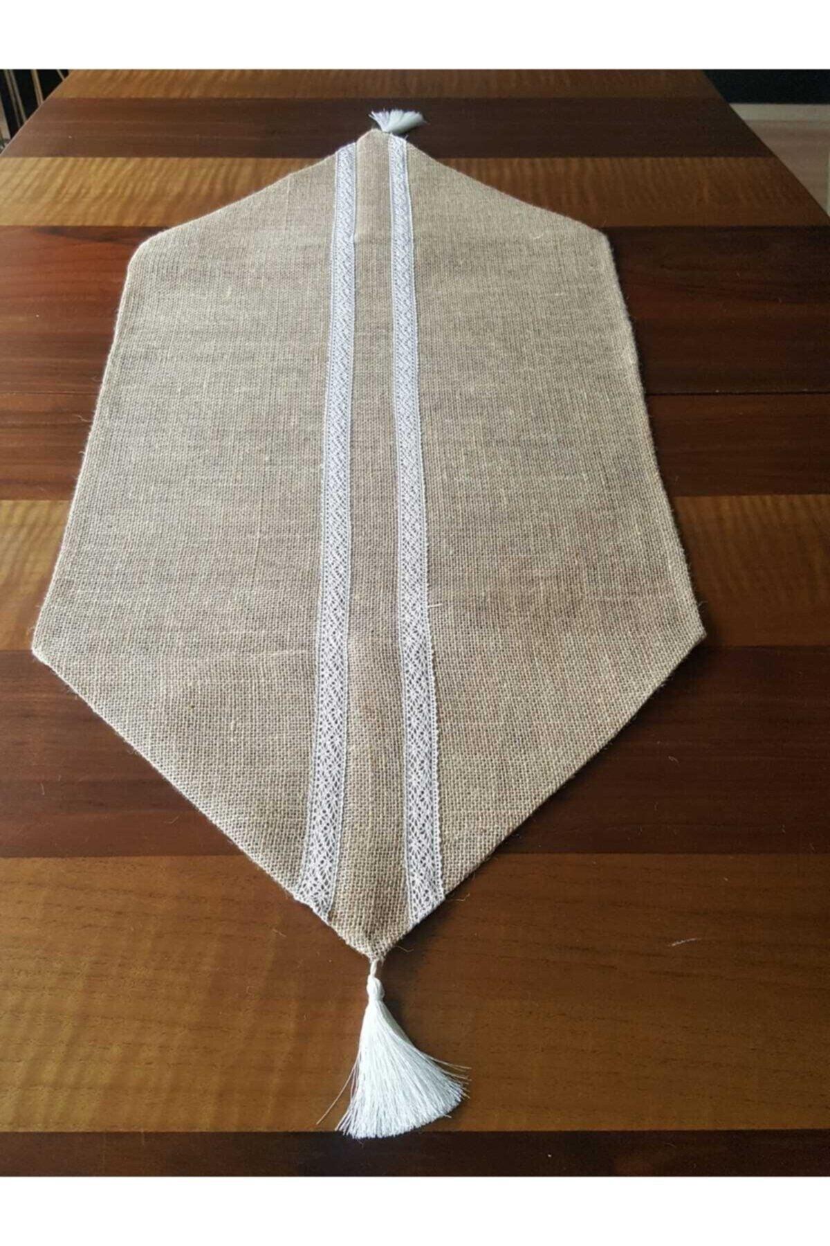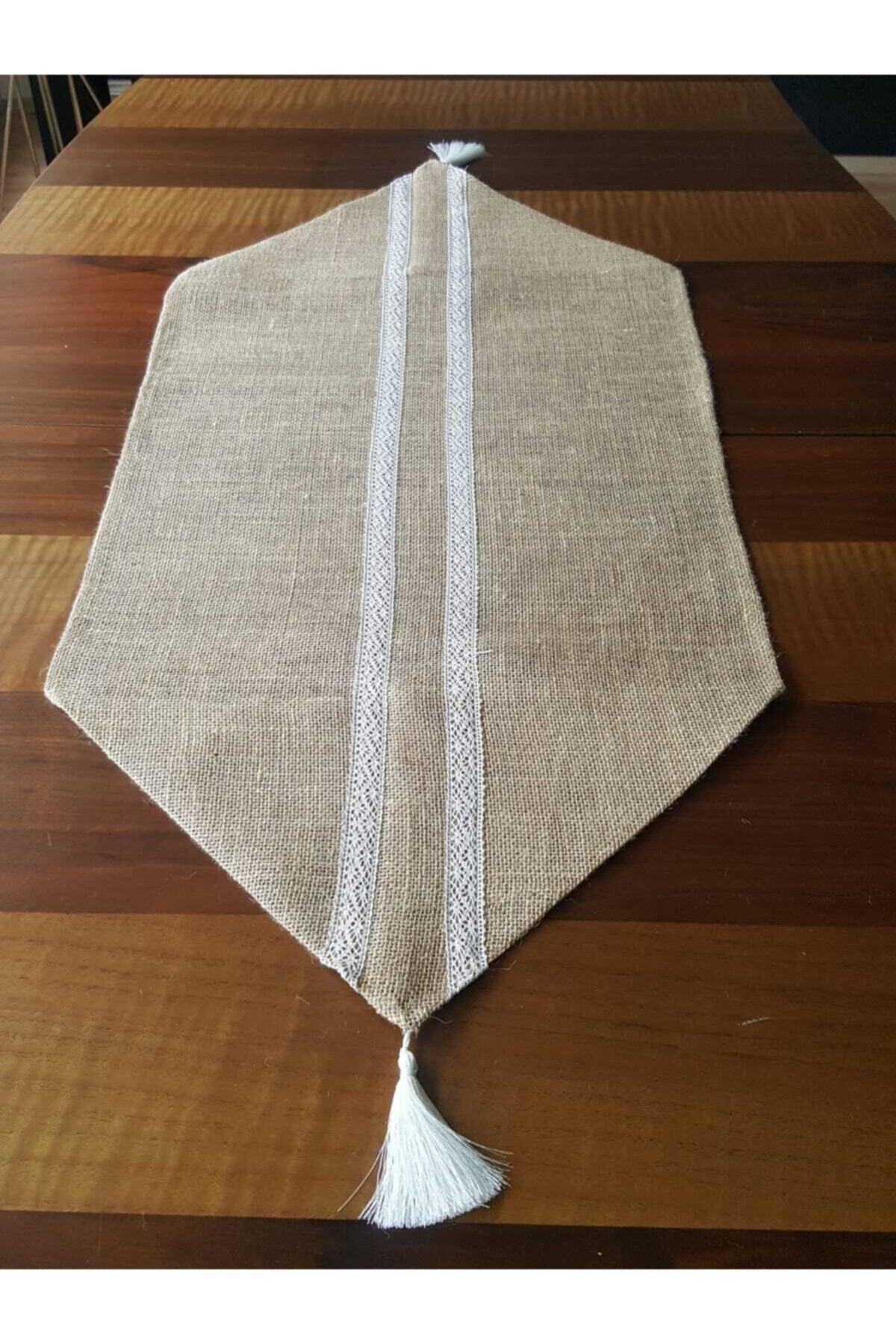 Corridore ricamato in pizzo su tessuto di iuta 45x140 cm