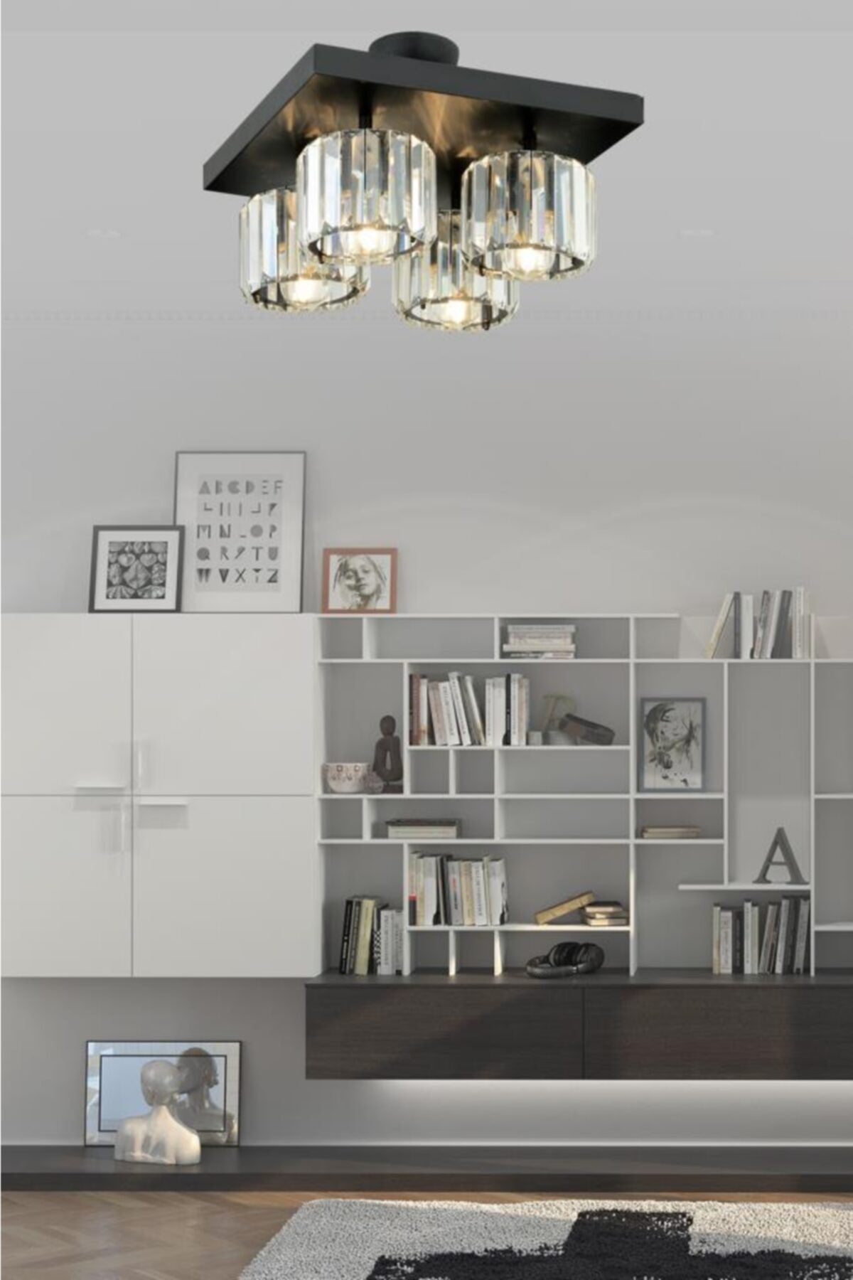 Lara 4-Piece Black Y-10 Crystal Stone Chandelier