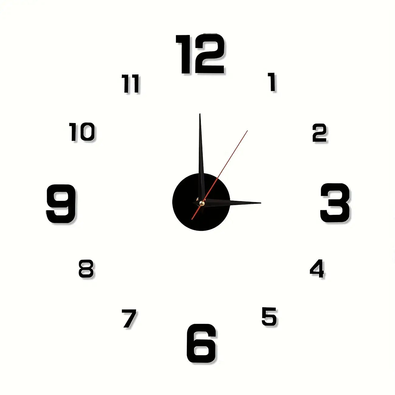 -Like Glossy PVC Clock Wall Sticker - Large Black Arabic Numerals & Hands, White Face with Golden Hour Markers, Easy Peel & Stick for Walls, Room, Living Room, Bedroom - Removable Modern Analog Clock