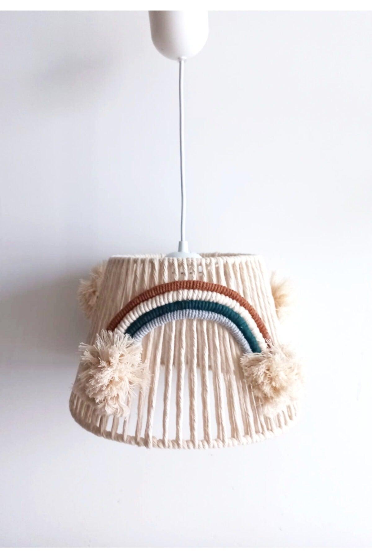 Macrame Discussione Discussione arcobaleno Applicata a mano Pompom Baby and Kids Room Chandelier (2)