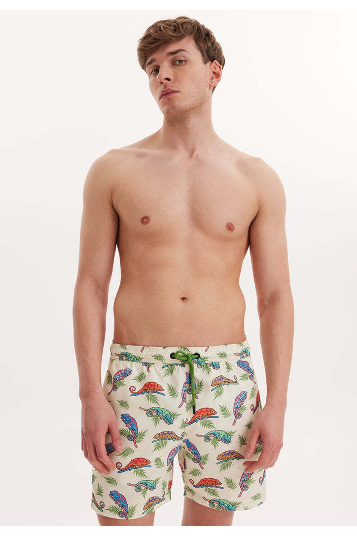 Men'S Beige Printed Sea Shorts Wmpattern Swımshorts