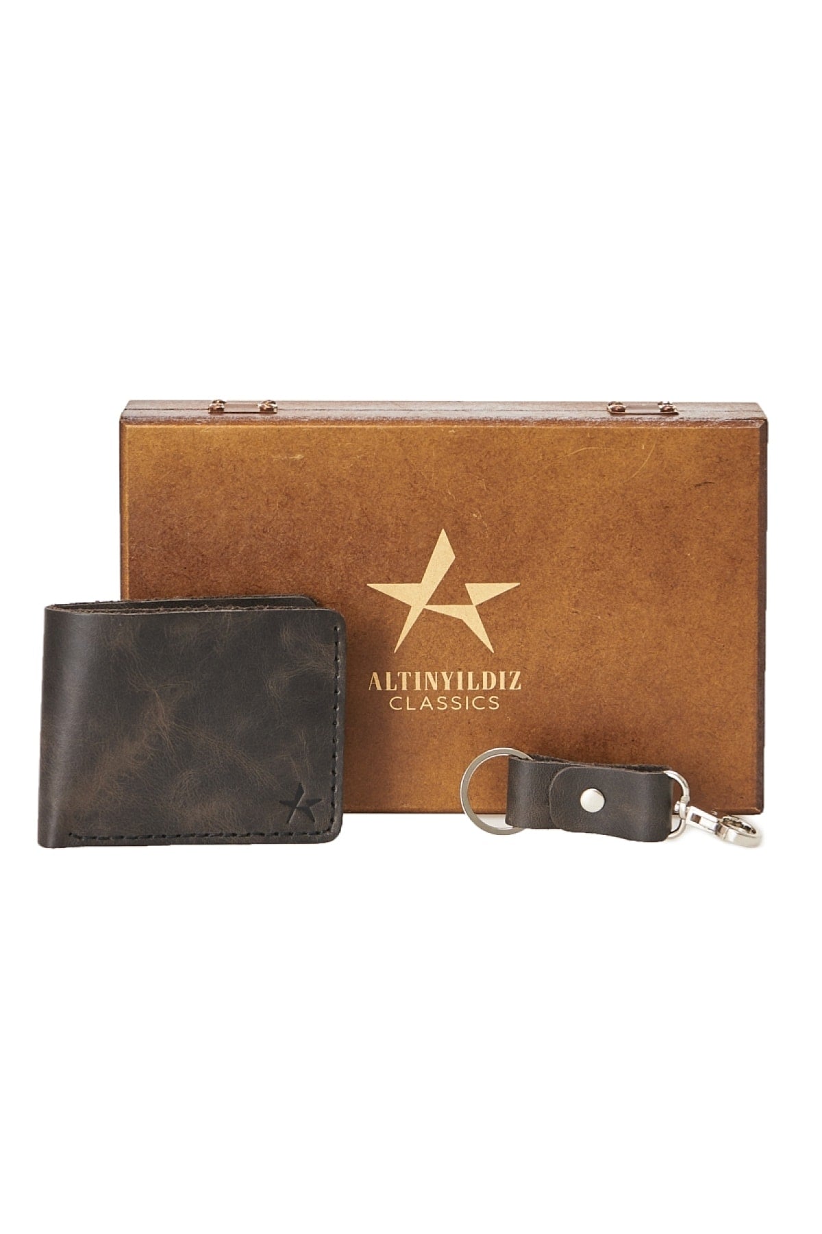 Men'S Black 100% Genuine Leather Wallet Keychain