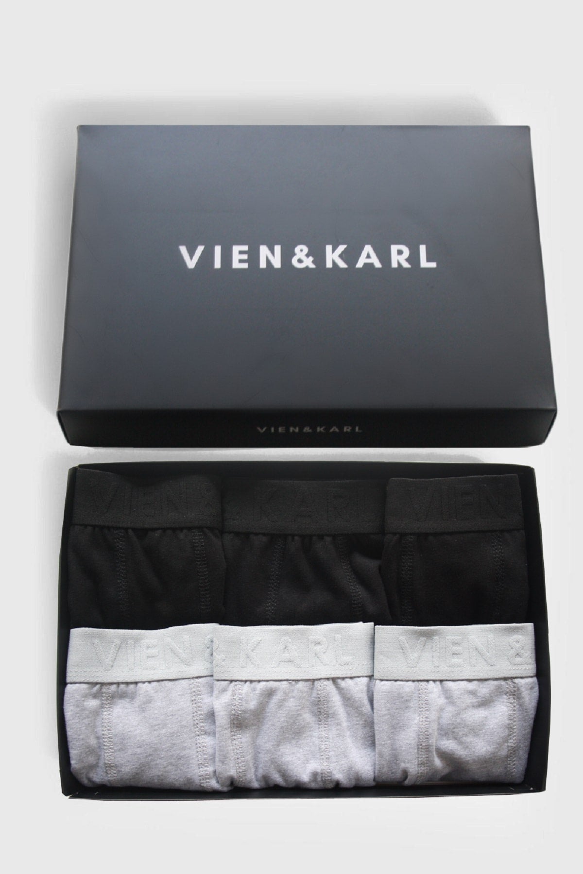 Men'S Black Gray 6-Box Plain Lycra Boxer Shorts