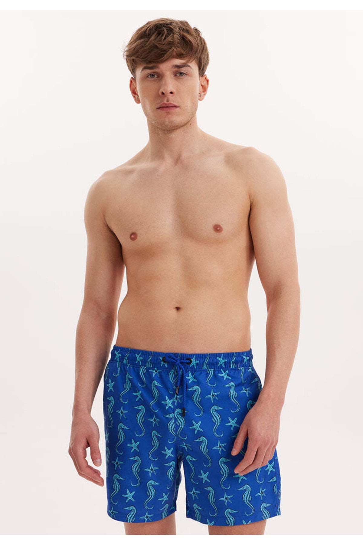 Men'S Blue/Turquoise Printed Marine Shorts Wmpattern Swımshorts