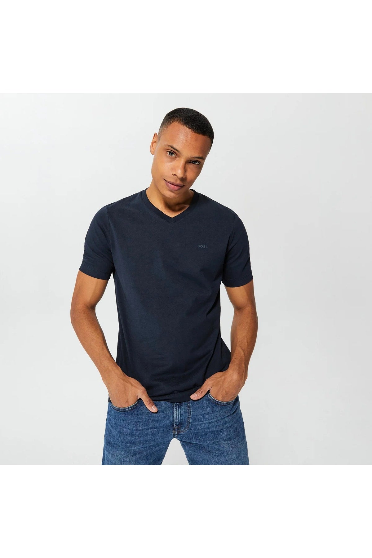 Men'S Cotton V Neck Regular Fit Navy Blue T-Shirt 50468348-404