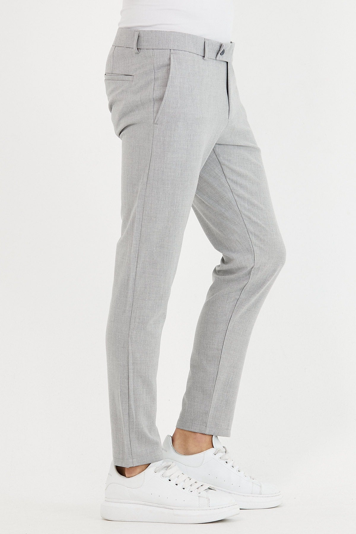 Men'S Gray Color Italian Cut Quality Flexible Lycra Ankle Length Fabric Trousers