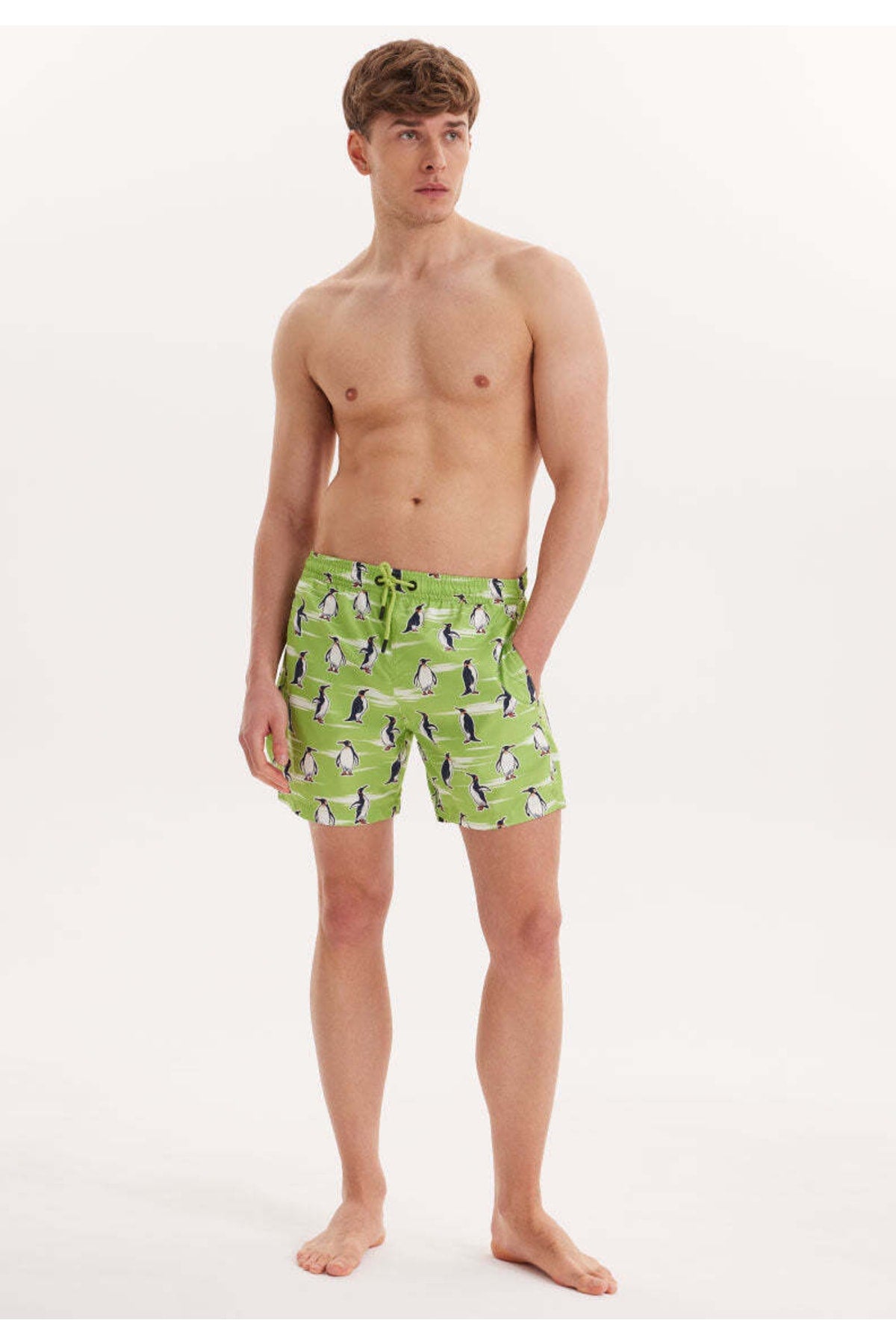 Men'S Green Printed Marine Shorts Wmpattern Swimshorts