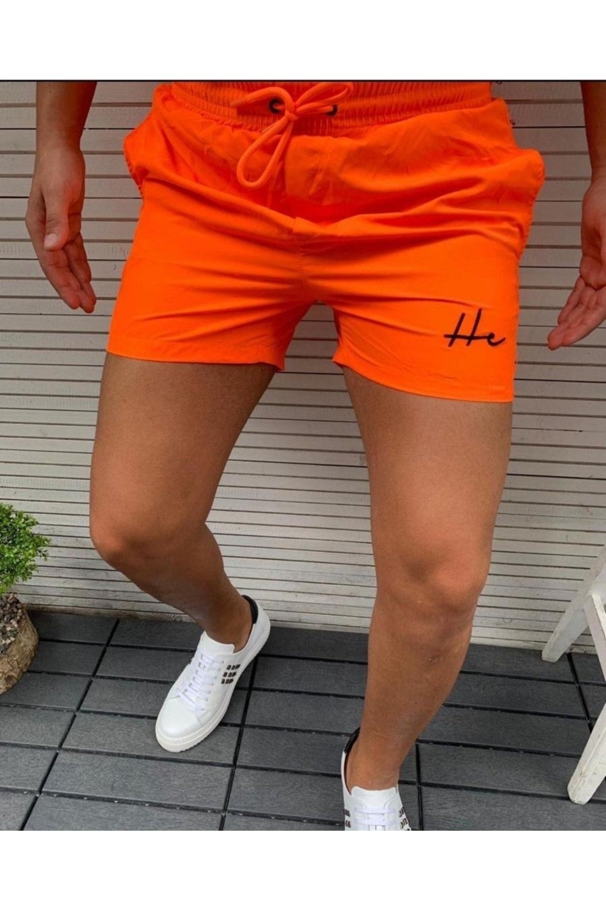 Men'S Neon Orange Solid Color Pocket Model Marine Shorts Swimsuit